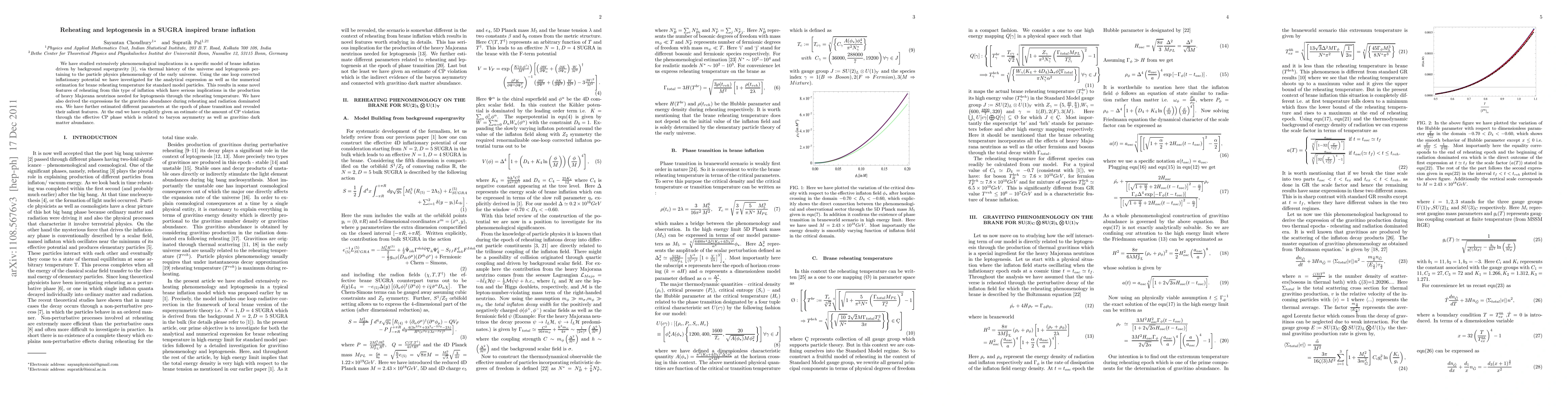 This paper explores the phenomenological implications of brane inflation driven by supergravity, focusing on the reheating process and its role in leptogenesis. It derives expressions for the reheating temperature and gravitino abundance, revealing novel features of reheating that impact the production of heavy Majorana neutrinos essential for leptogenesis, and provides estimates for CP violation and gravitino dark matter abundance.