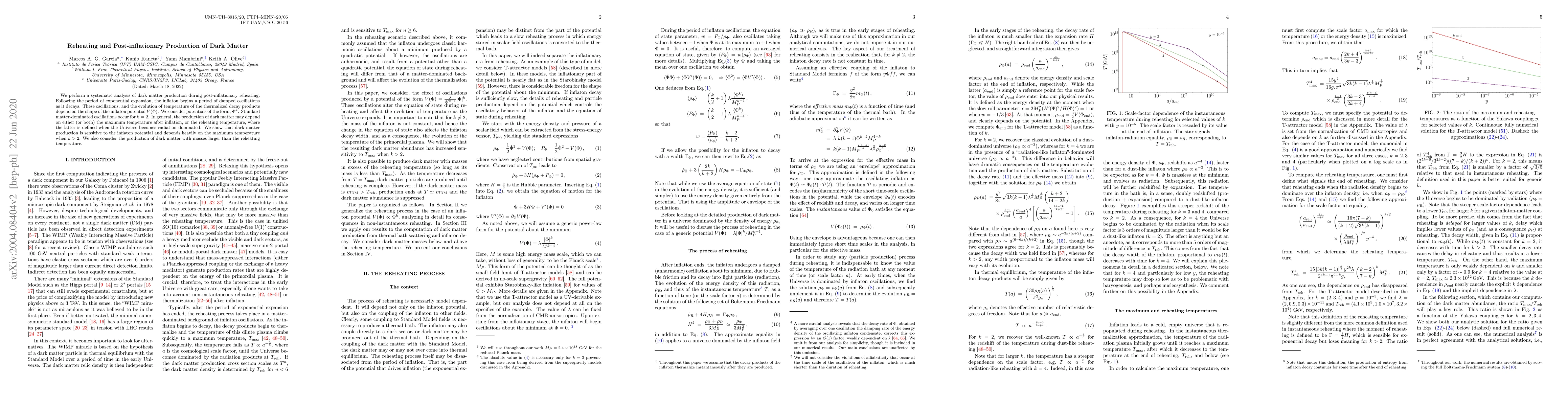 This paper analyzes dark matter production during the reheating phase following inflation, focusing on the dependence of this process on the inflaton potential shape, specifically $\Phi^k$. It finds that dark matter production is significantly influenced by the maximum temperature after inflation, especially for potentials with $k > 2$.