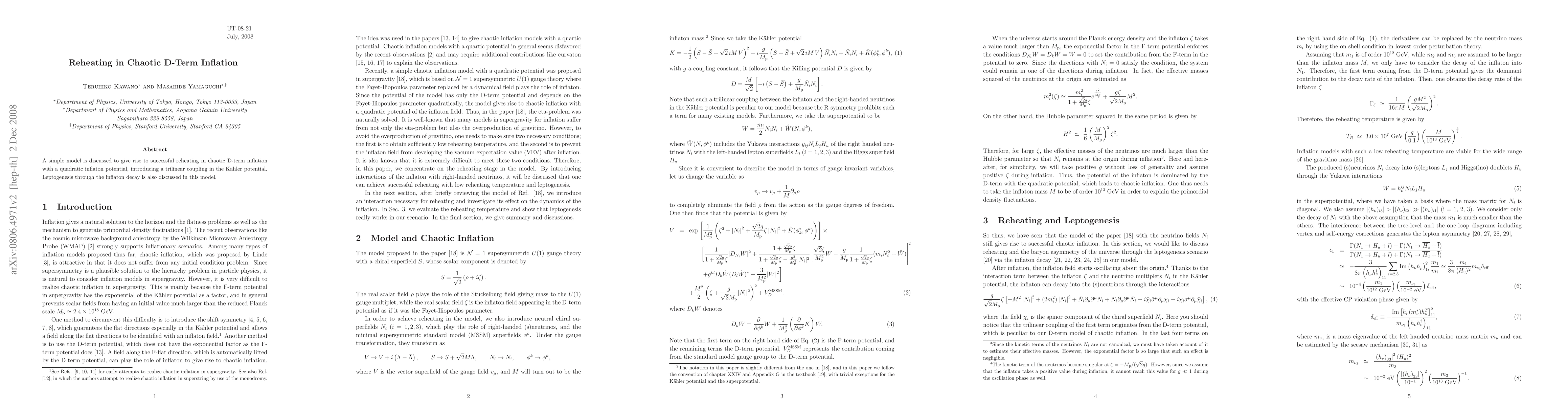 This paper proposes a model for chaotic D-term inflation with a quadratic potential, introducing a trilinear coupling to achieve successful reheating. It also explores leptogenesis via inflaton decay within the framework.