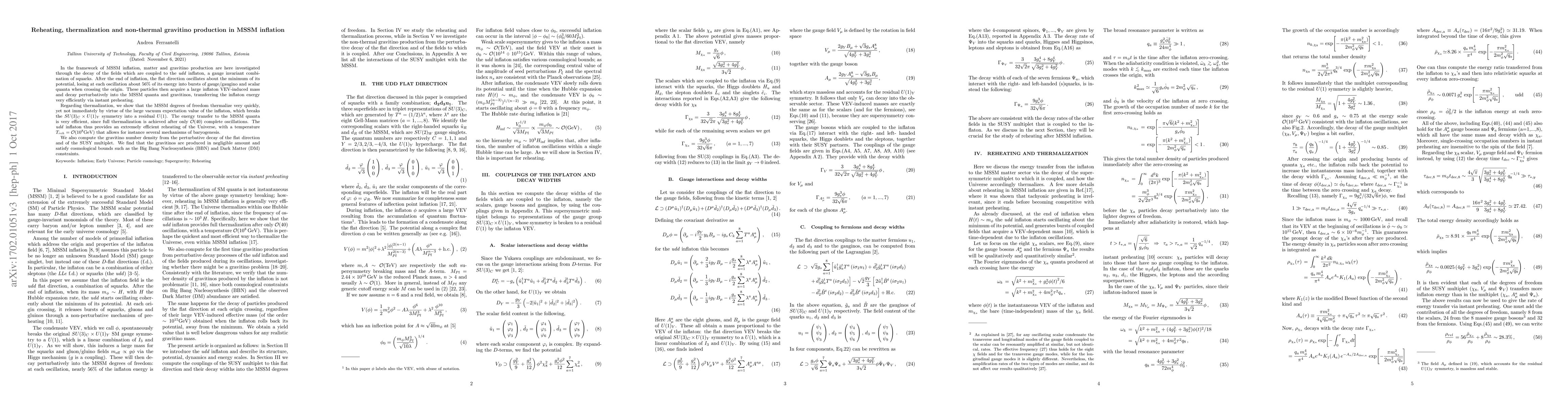 In the framework of MSSM inflation, matter and gravitino production are here investigated through the decay of the fields which are coupled to the udd inflaton, a gauge invariant combination of squarks. After the end of inflation, the flat direction oscillates about the minimum of its potential, losing at each oscillation about 56% of its energy into bursts of gauge/gaugino and scalar quanta when crossing the origin. These particles then acquire a large inflaton VEV-induced mass and decay perturbatively into the MSSM quanta and gravitinos, transferring the inflaton energy very efficiently via instant preheating. Regarding thermalization, we show that the MSSM degrees of freedom thermalize very quickly, yet not immediately by virtue of the large vacuum expectation value of the inflaton, which breaks the $SU(3)_C\times U(1)_Y$ symmetry into a residual $U(1)$. The energy transfer to the MSSM quanta is very efficient, since full thermalization is achieved after only $\mathcal{O}(40)$ complete oscillations. The udd inflaton thus provides an extremely efficient reheating of the Universe, with a temperature $T_{reh}=\mathcal{O}(10^8\mathrm{GeV})$ that allows for instance several mechanisms of baryogenesis. We also compute the gravitino number density from the perturbative decay of the flat direction and of the SUSY multiplet. We find that the gravitinos are produced in negligible amount and satisfy cosmological bounds such as the Big Bang Nucleosynthesis (BBN) and Dark Matter (DM) constraints.