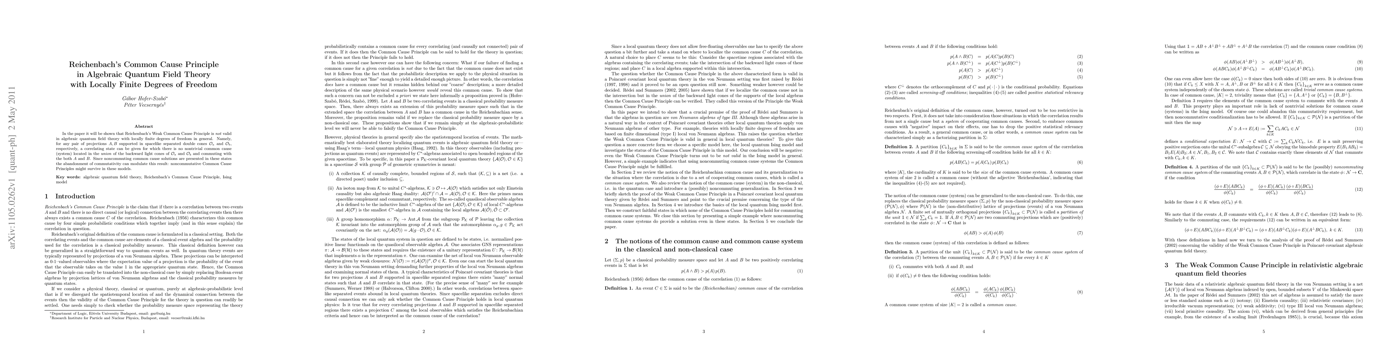 The paper demonstrates that Reichenbach's Weak Common Cause Principle does not hold in algebraic quantum field theory with locally finite degrees of freedom, presenting correlating states without a nontrivial common cause. It suggests that abandoning commutativity may allow for noncommutative Common Cause Principles to persist in these models.