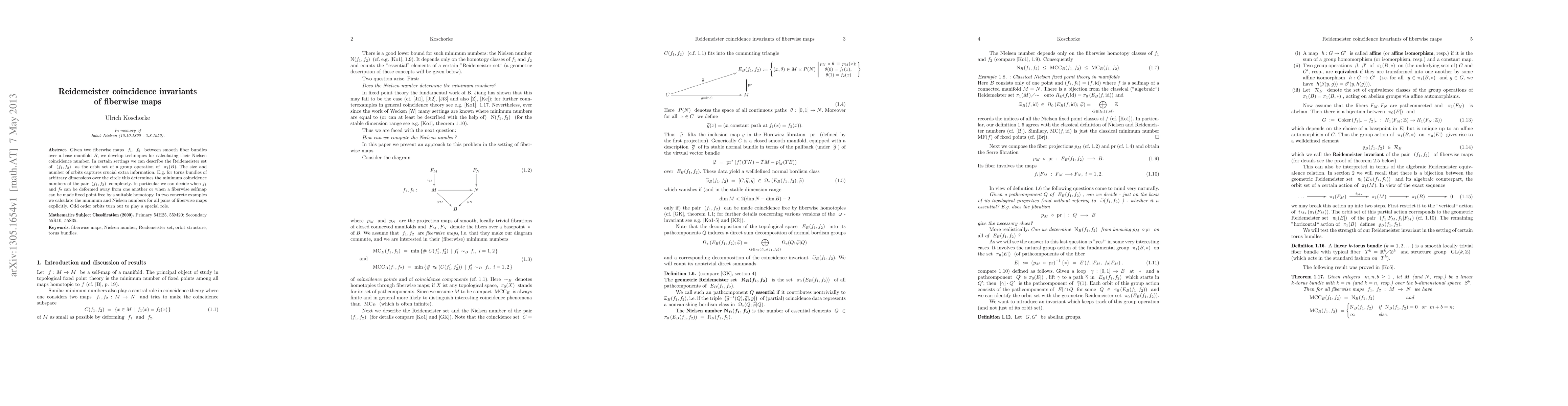 The research develops techniques for calculating the Nielsen coincidence number of fiberwise maps between smooth fiber bundles over a base manifold B, describing the Reidemeister set of (f1, f2) as the orbit set of a group operation of π1(B).
