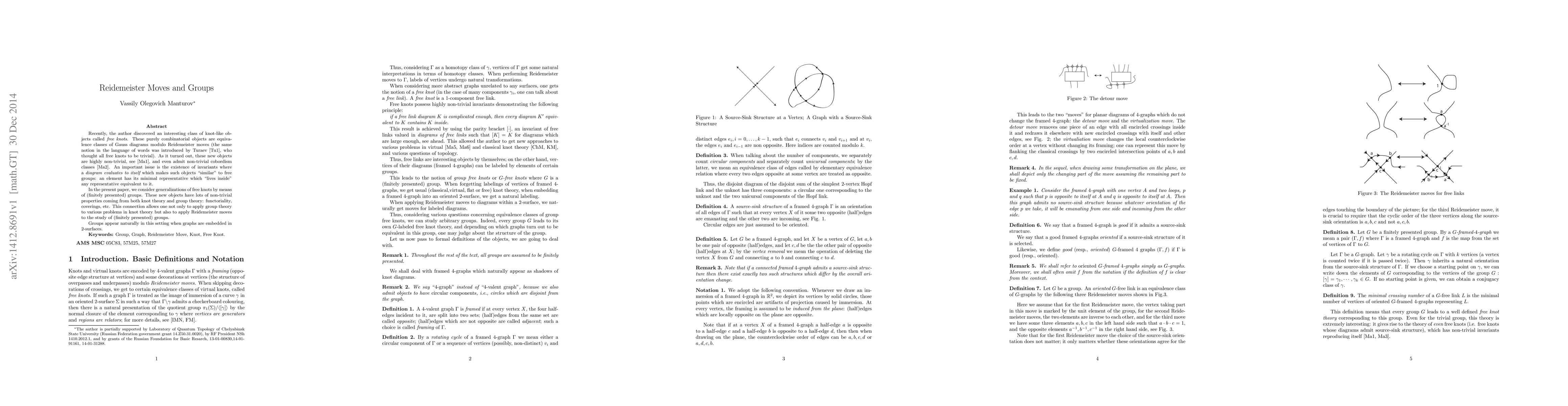Recently, the author discovered an interesting class of knot-like objects called free knots. These purely combinatorial objects are equivalence classes of Gauss diagrams modulo Reidemeister moves (the same notion in the language of words was introduced by Turaev, who thought all free knots to be trivial). As it turned out, these new objects are highly non-trivial, and even admit non-trivial cobordism classes. An important issue is the existence of invariants where a diagram evaluates to itself which makes such objects "similar" to free groups: an element has its minimal representative which "lives inside" any representative equivalent to it.