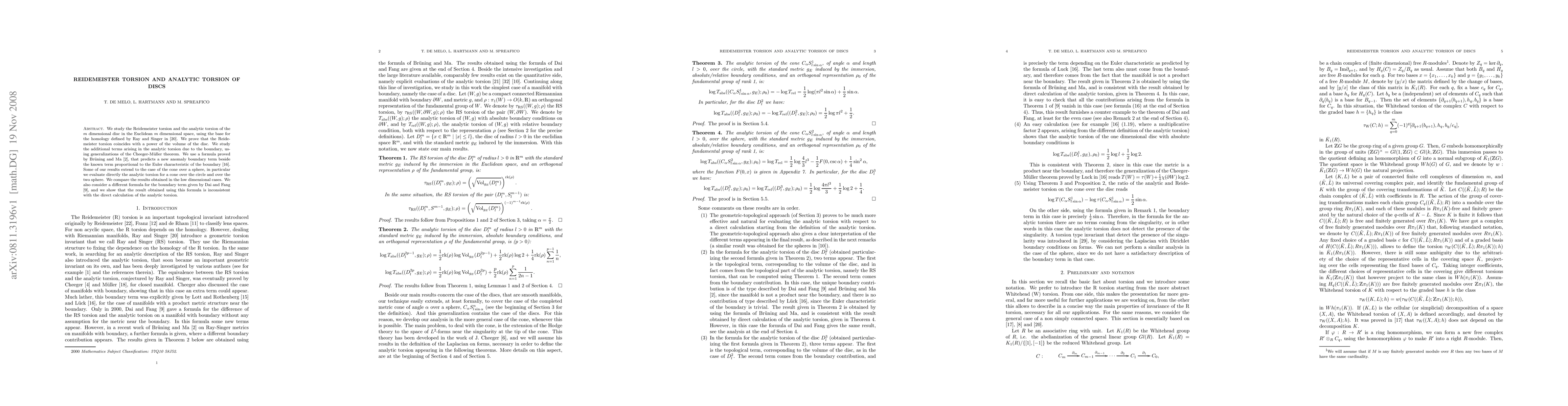 This paper investigates the Reidemeister torsion and analytic torsion of $m$-dimensional discs in Euclidean space, proving that the Reidemeister torsion equals a power of the disc's volume. It also examines the additional terms in analytic torsion due to the boundary, revealing a new anomaly term beyond the Euler characteristic-related term, and compares different formulas for the boundary term, showing inconsistency between one formula and direct calculations.