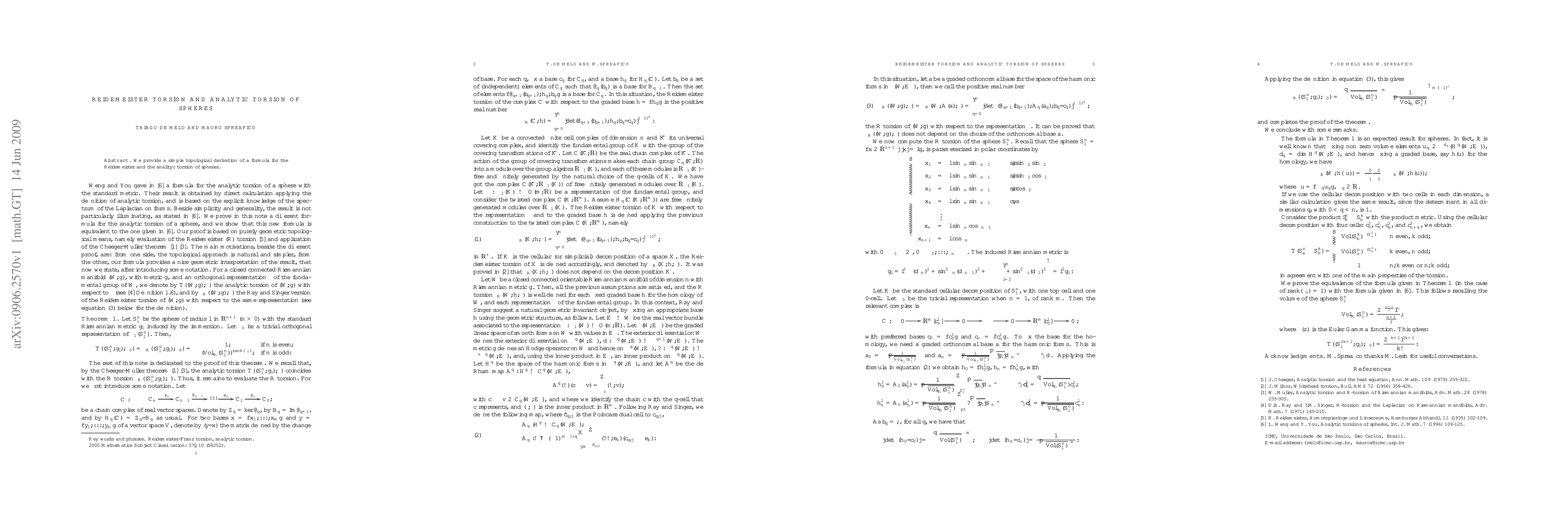 We provide a simple topological derivation of a formula for the Reidemeister and the analityc torsion of spheres.