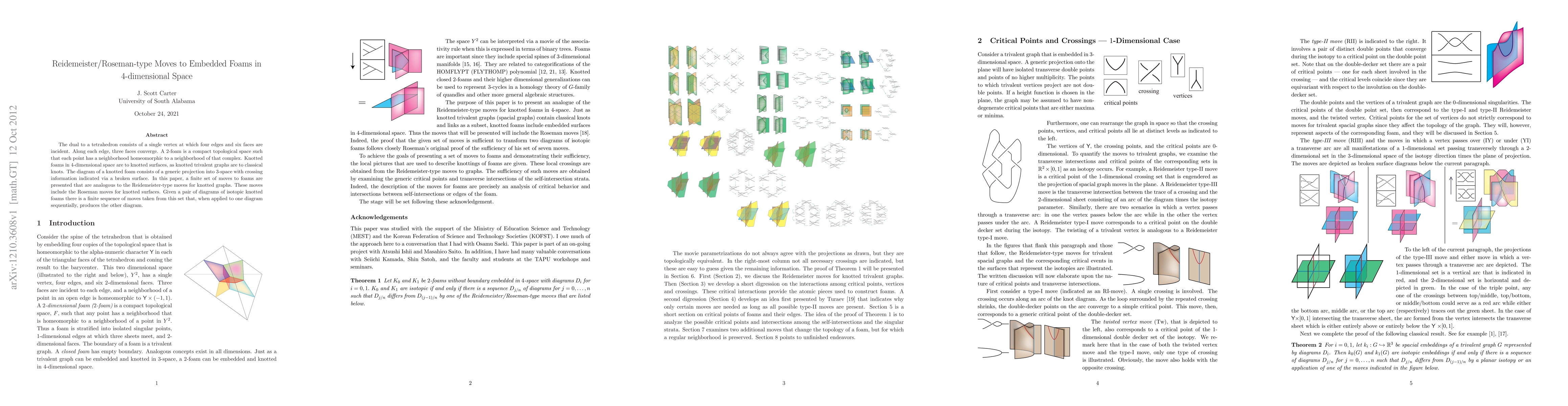 The dual to a tetrahedron consists of a single vertex at which four edges and six faces are incident. Along each edge, three faces converge. A 2-foam is a compact topological space such that each point has a neighborhood homeomorphic to a neighborhood of that complex. Knotted foams in 4-dimensional space are to knotted surfaces, as knotted trivalent graphs are to classical knots. The diagram of a knotted foam consists of a generic projection into 4-space with crossing information indicated via a broken surface. In this paper, a finite set of moves to foams are presented that are analogous to the Reidemeister-type moves for knotted graphs. These moves include the Roseman moves for knotted surfaces. Given a pair of diagrams of isotopic knotted foams there is a finite sequence of moves taken from this set that, when applied to one diagram sequentially, produces the other diagram.