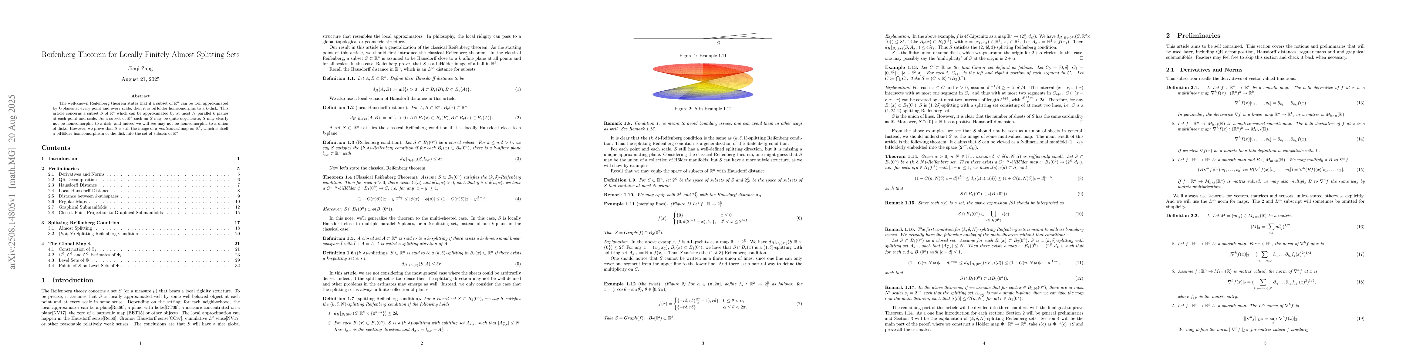 This research extends the classical Reifenberg theorem, providing a more general framework for understanding the geometric structure of sets that are locally approximated by a finite number of planes, which has implications in geometric measure theory and the study of rectifiable sets.