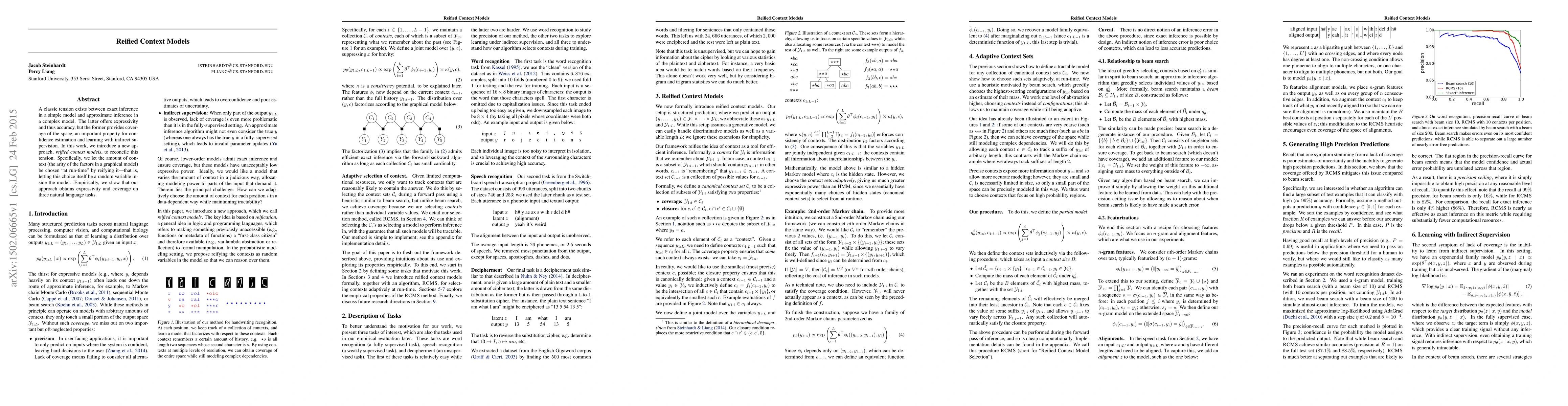 A classic tension exists between exact inference in a simple model and approximate inference in a complex model. The latter offers expressivity and thus accuracy, but the former provides coverage of the space, an important property for confidence estimation and learning with indirect supervision. In this work, we introduce a new approach, reified context models, to reconcile this tension. Specifically, we let the amount of context (the arity of the factors in a graphical model) be chosen "at run-time" by reifying it---that is, letting this choice itself be a random variable inside the model. Empirically, we show that our approach obtains expressivity and coverage on three natural language tasks.