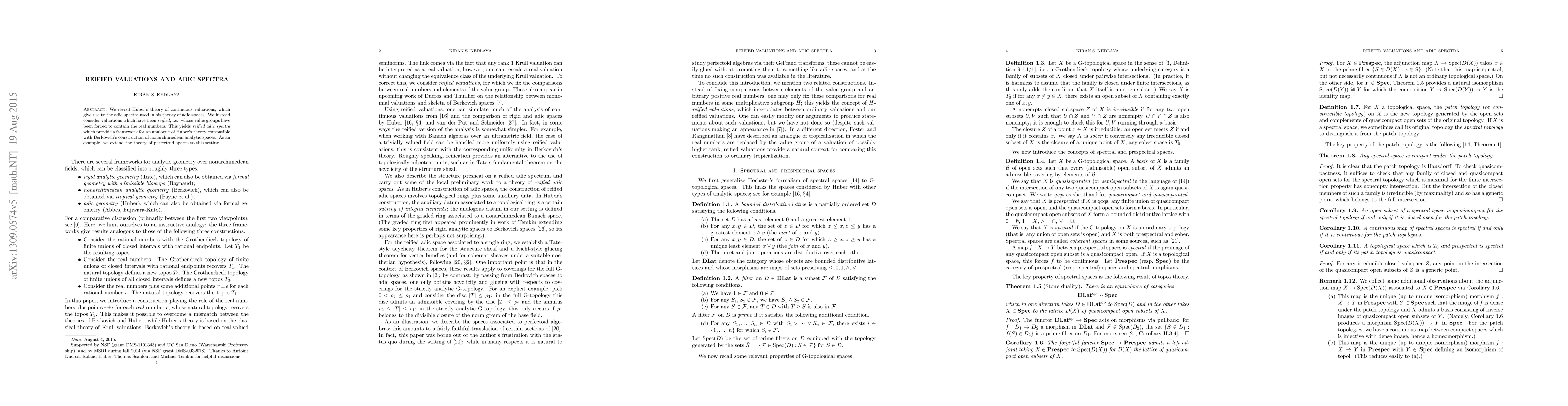 We revisit Huber's theory of continuous valuations, which give rise to the adic spectra used in his theory of adic spaces. We instead consider valuations which have been reified, i.e., whose value groups have been forced to contain the real numbers. This yields reified adic spectra which provide a framework for an analogue of Huber's theory compatible with Berkovich's construction of nonarchimedean analytic spaces. As an example, we extend the theory of perfectoid spaces to this setting.