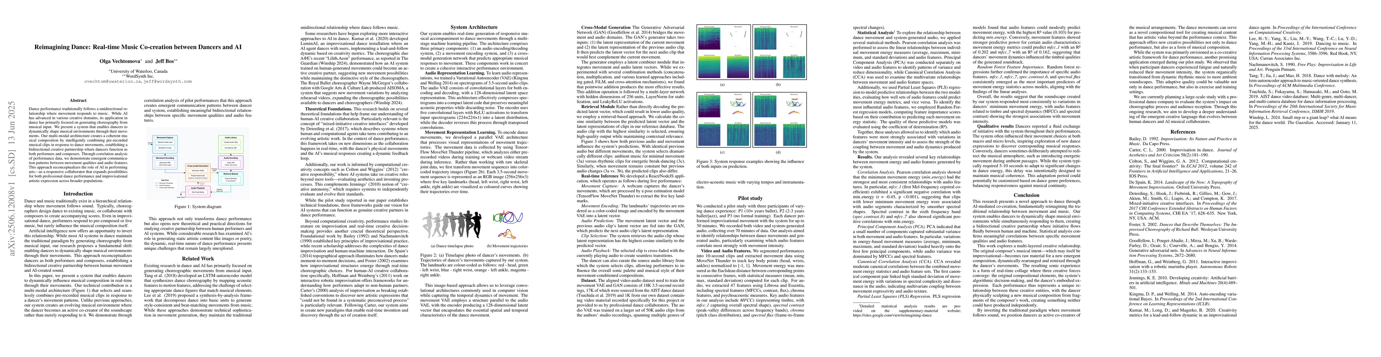Dance performance traditionally follows a unidirectional relationship where movement responds to music. While AI has advanced in various creative domains, its application in dance has primarily focused on generating choreography from musical input. We present a system that enables dancers to dynamically shape musical environments through their movements. Our multi-modal architecture creates a coherent musical composition by intelligently combining pre-recorded musical clips in response to dance movements, establishing a bidirectional creative partnership where dancers function as both performers and composers. Through correlation analysis of performance data, we demonstrate emergent communication patterns between movement qualities and audio features. This approach reconceptualizes the role of AI in performing arts as a responsive collaborator that expands possibilities for both professional dance performance and improvisational artistic expression across broader populations.