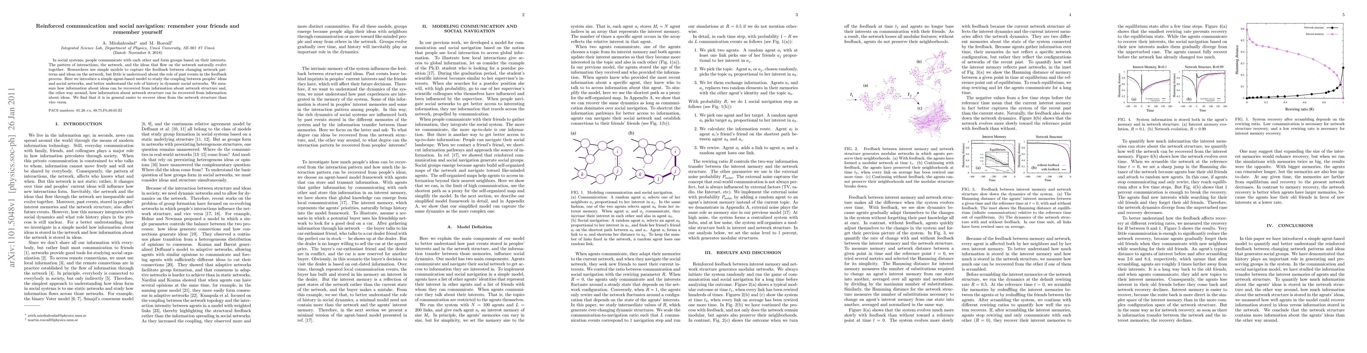 In social systems, people communicate with each other and form groups based on their interests. The pattern of interactions, the network, and the ideas that flow on the network naturally evolve together. Researchers use simple models to capture the feedback between changing network patterns and ideas on the network, but little is understood about the role of past events in the feedback process. Here we introduce a simple agent-based model to study the coupling between peoples' ideas and social networks, and better understand the role of history in dynamic social networks. We measure how information about ideas can be recovered from information about network structure and, the other way around, how information about network structure can be recovered from information about ideas. We find that it is in general easier to recover ideas from the network structure than vice versa.
