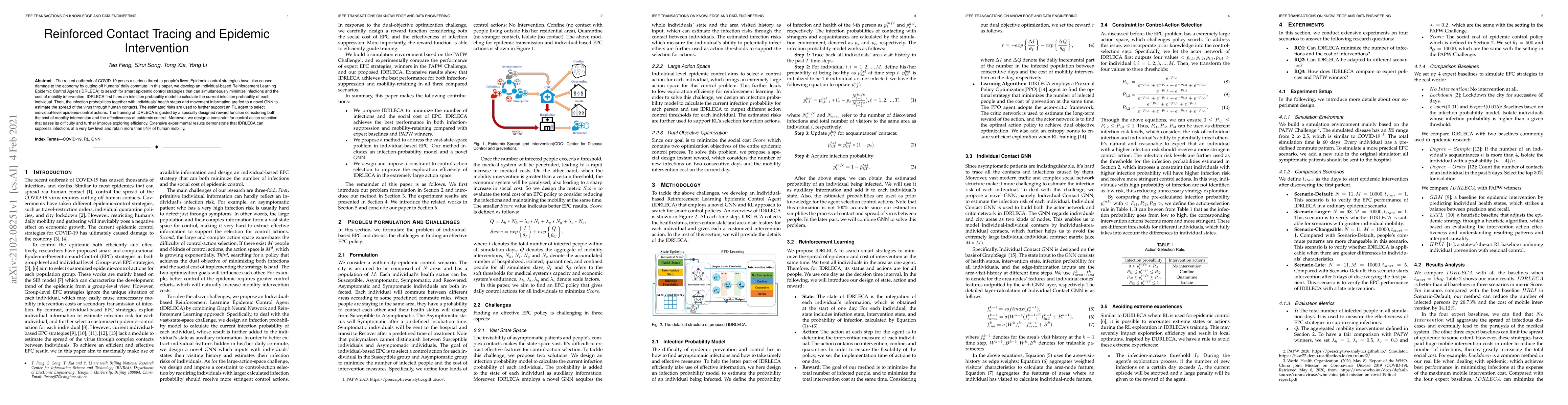 The recent outbreak of COVID-19 poses a serious threat to people's lives. Epidemic control strategies have also caused damage to the economy by cutting off humans' daily commute. In this paper, we develop an Individual-based Reinforcement Learning Epidemic Control Agent (IDRLECA) to search for smart epidemic control strategies that can simultaneously minimize infections and the cost of mobility intervention. IDRLECA first hires an infection probability model to calculate the current infection probability of each individual. Then, the infection probabilities together with individuals' health status and movement information are fed to a novel GNN to estimate the spread of the virus through human contacts. The estimated risks are used to further support an RL agent to select individual-level epidemic-control actions. The training of IDRLECA is guided by a specially designed reward function considering both the cost of mobility intervention and the effectiveness of epidemic control. Moreover, we design a constraint for control-action selection that eases its difficulty and further improve exploring efficiency. Extensive experimental results demonstrate that IDRLECA can suppress infections at a very low level and retain more than 95% of human mobility.