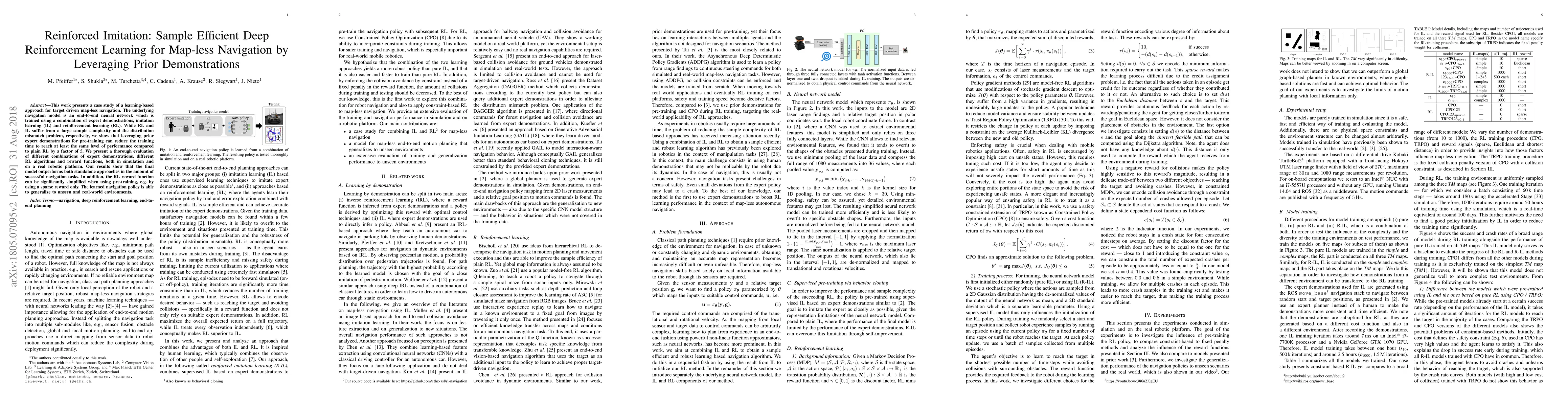 This paper proposes a sample-efficient deep reinforcement learning method for map-less navigation using expert demonstrations, combining imitation learning and reinforcement learning to significantly reduce training time. The approach outperforms standalone RL and IL methods, demonstrating effective generalization to real-world environments.