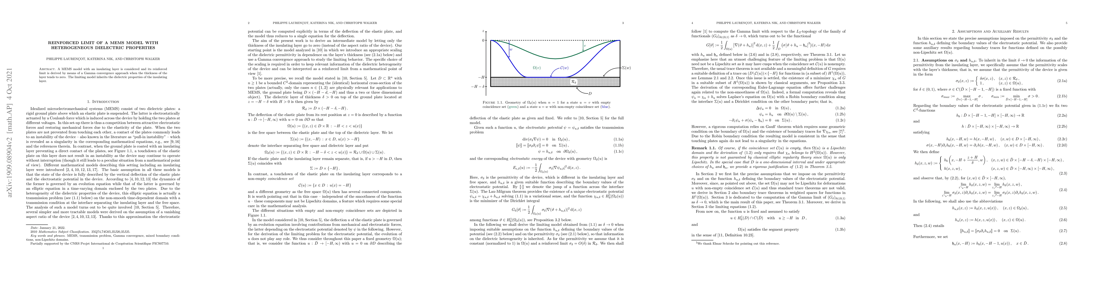 A MEMS model with an insulating layer is considered and its reinforced limit is derived by means of a Gamma convergence approach when the thickness of the layer tends to zero. The limiting model inherits the dielectric properties of the insulating layer.