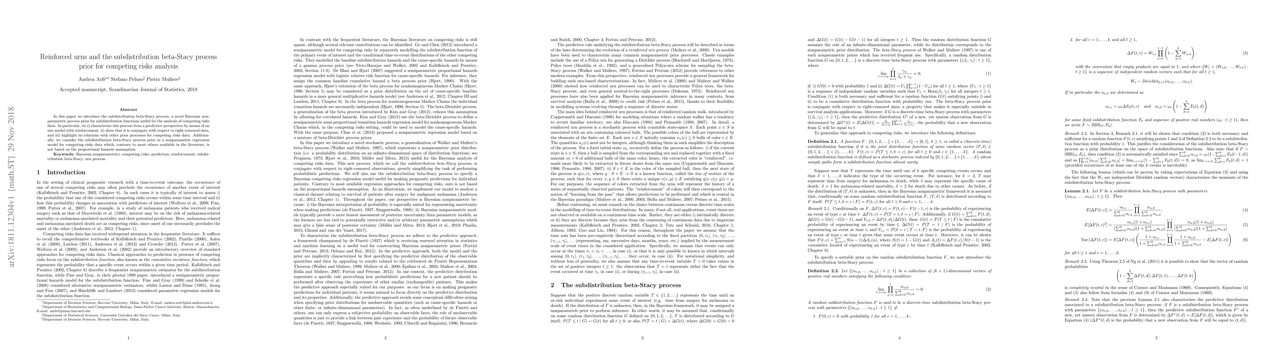 This paper introduces the subdistribution beta-Stacy process, a Bayesian nonparametric prior for analyzing competing risks data. It characterizes the process via a reinforced urn model and demonstrates its conjugacy with right-censored data, while also exploring its application in a nonparametric regression model without the proportional hazards assumption.