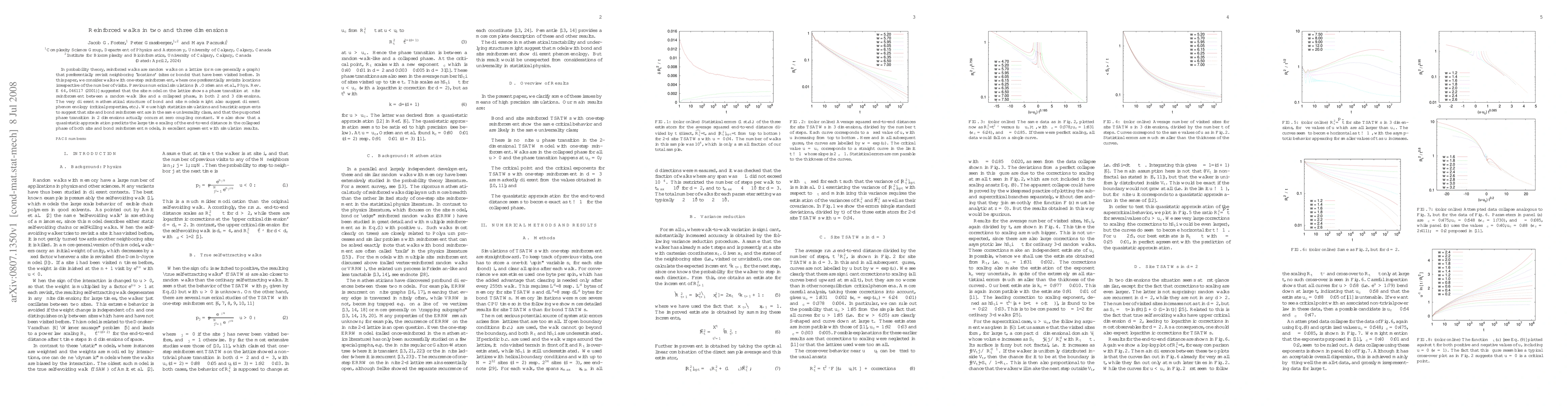 This paper explores the behavior of reinforced random walks in two and three dimensions, demonstrating that despite differences in mathematical structure, site and bond reinforcement models exhibit similar phenomenology. The study suggests that the phase transition previously observed in the site model actually occurs at zero coupling constant, and validates a quasi-static approximation for predicting the large time scaling of the end-to-end distance in the collapsed phase.
