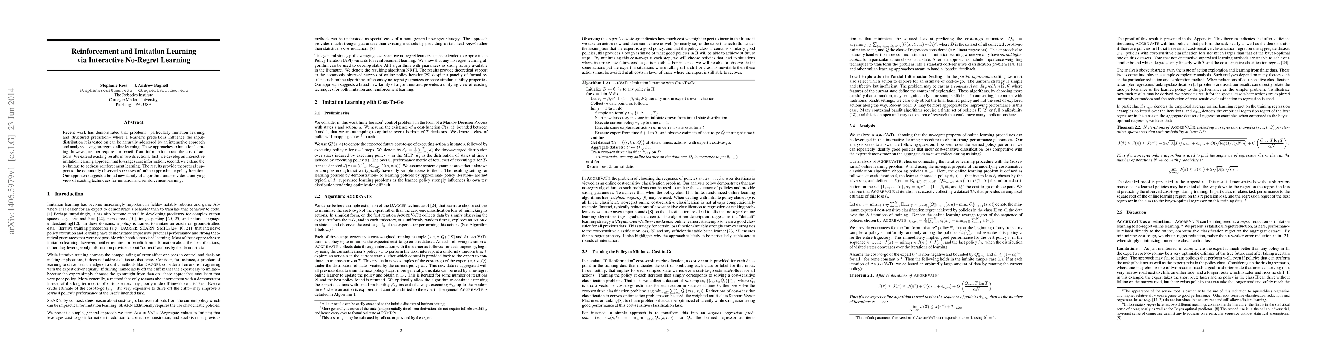 This paper extends interactive no-regret learning to incorporate cost information for both imitation and reinforcement learning, offering a new approach that unifies existing techniques and supports the success of online approximate policy iteration. The proposed method provides a broad new family of algorithms for these learning paradigms.