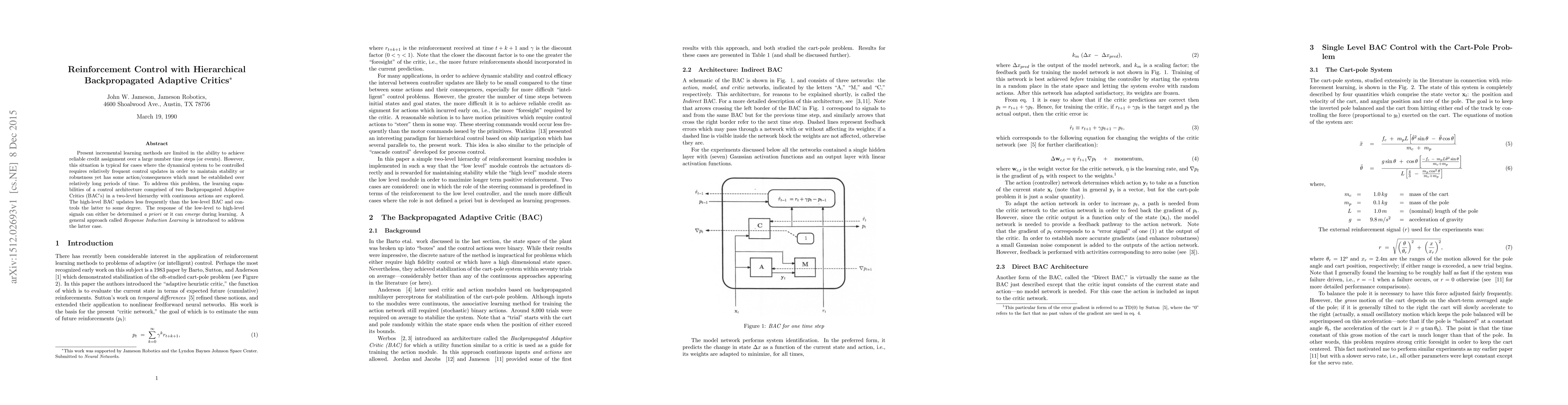 A new control architecture using two Backpropagated Adaptive Critics (BACs) with a hierarchical structure improves incremental learning for stable control in dynamic systems, addressing the challenge of reliable credit assignment over long time steps.