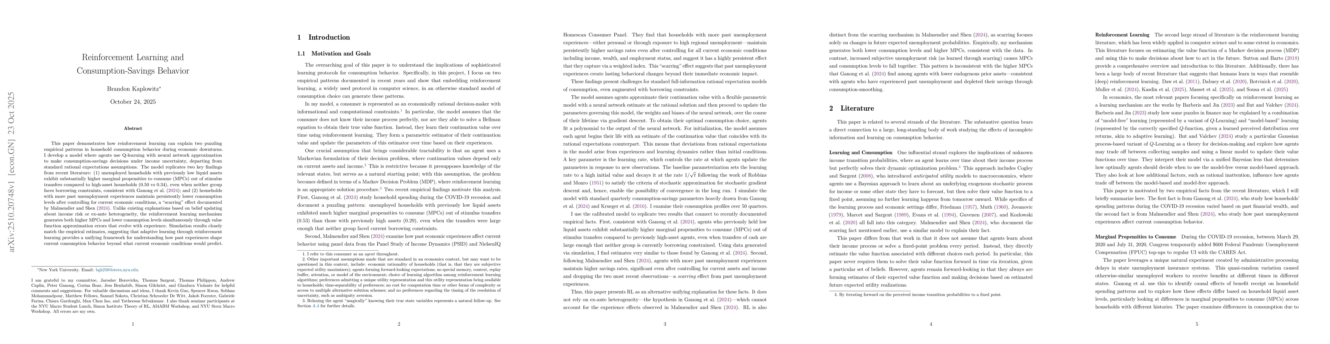 Develops a novel reinforcement learning framework that captures complex consumption dynamics and learning processes in economic contexts