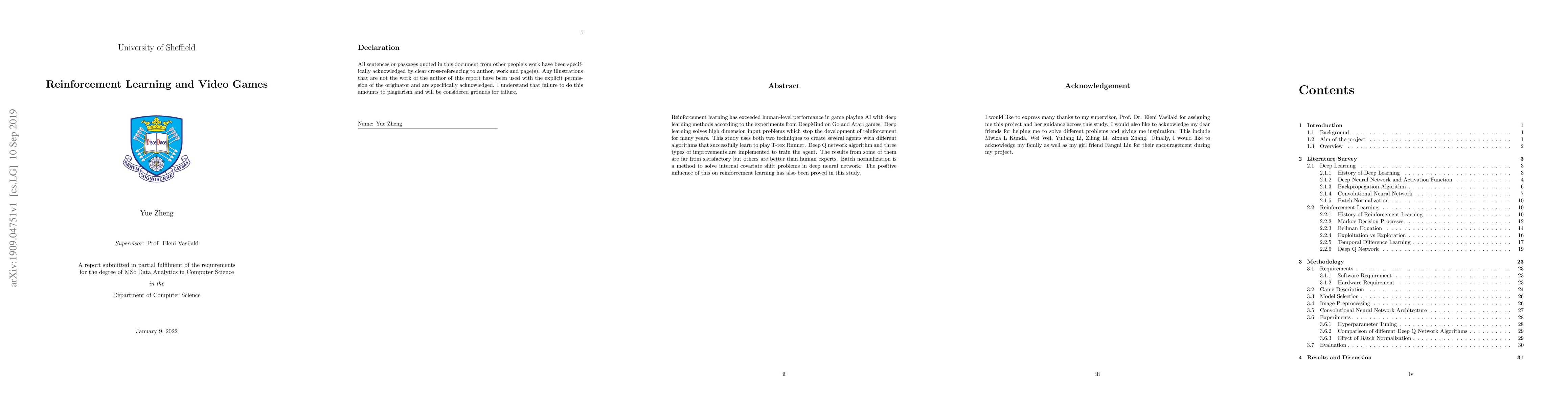 This study combines reinforcement learning and deep learning techniques to develop agents capable of playing T-rex Runner, achieving performance beyond human experts in some cases. Batch normalization proves effective in addressing internal covariate shift issues, enhancing the reinforcement learning outcomes.