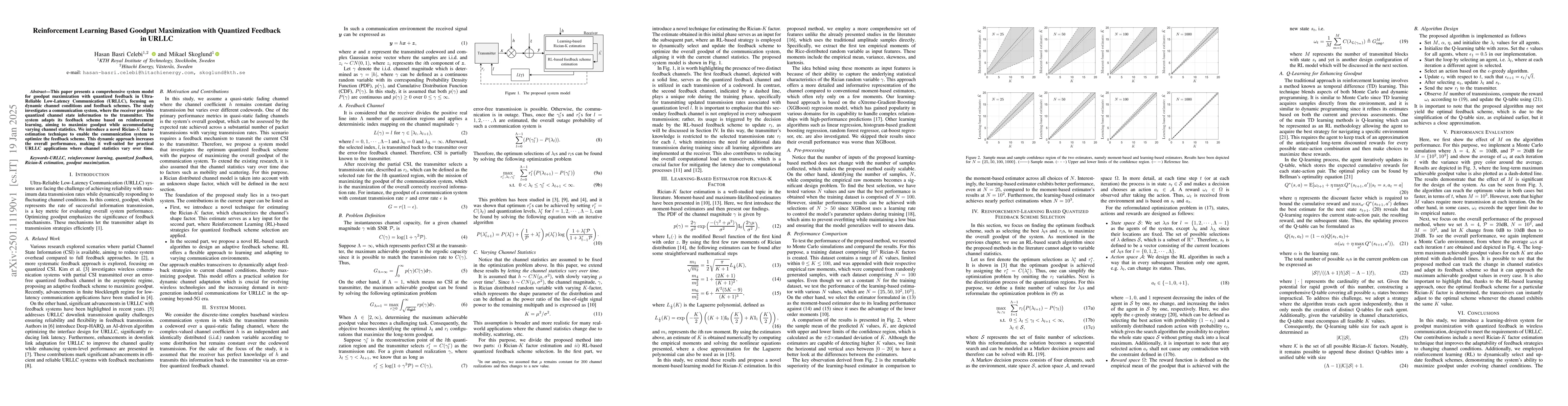 This research proposes a reinforcement learning system for maximizing goodput in Ultra-Reliable Low-Latency Communication (URLLC) using quantized feedback, adapting feedback schemes based on dynamic channel conditions. It introduces a novel Rician-$K$ factor estimation technique to optimize performance under varying channel statistics.