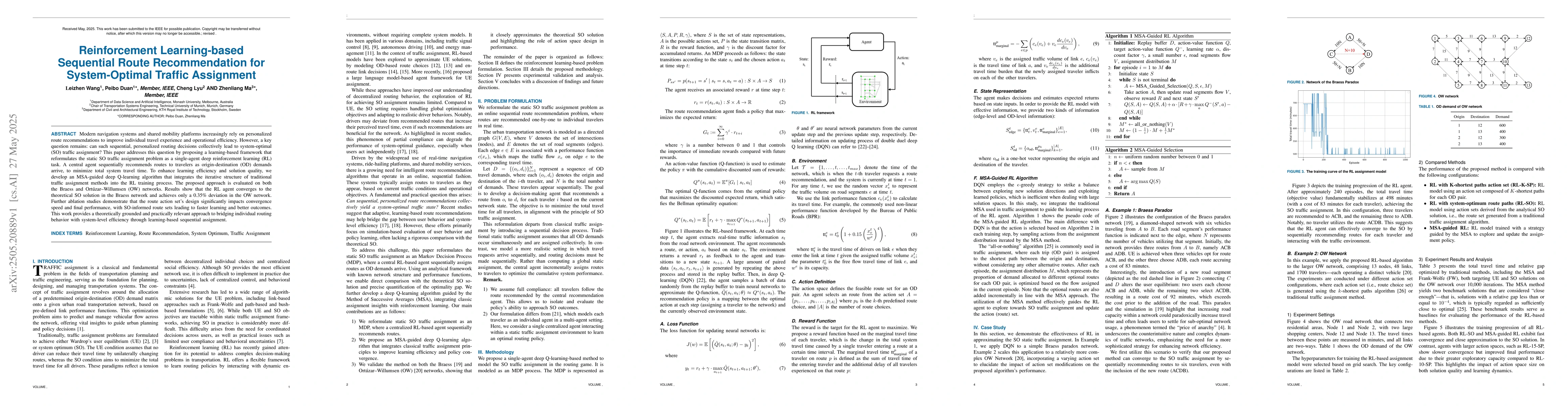 The paper proposes a learning-based framework that reformulates the static System-Optimal (SO) traffic assignment problem as a single-agent deep reinforcement learning (RL) task, using an MSA-guided deep Q-learning algorithm to enhance learning efficiency and solution quality.