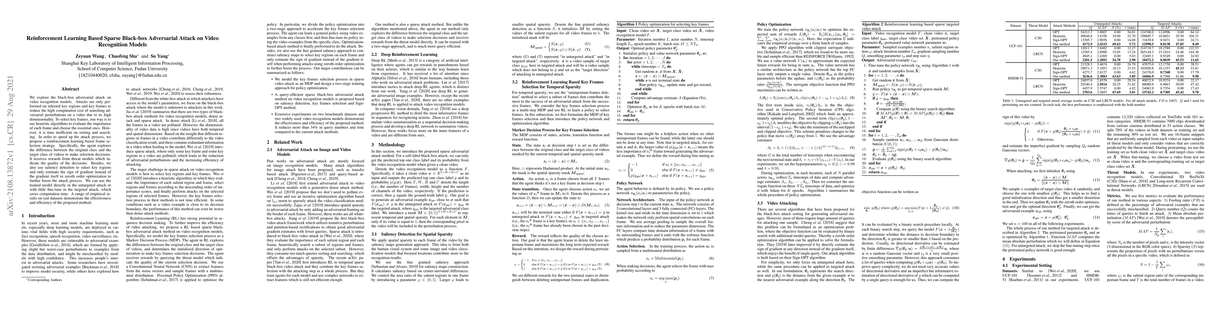 This paper proposes a reinforcement learning-based sparse black-box adversarial attack method for video recognition models, focusing on selecting key frames and regions to reduce computational costs. The method uses reinforcement learning for frame selection and saliency detection for region selection, demonstrating effectiveness and efficiency through empirical results on real datasets.