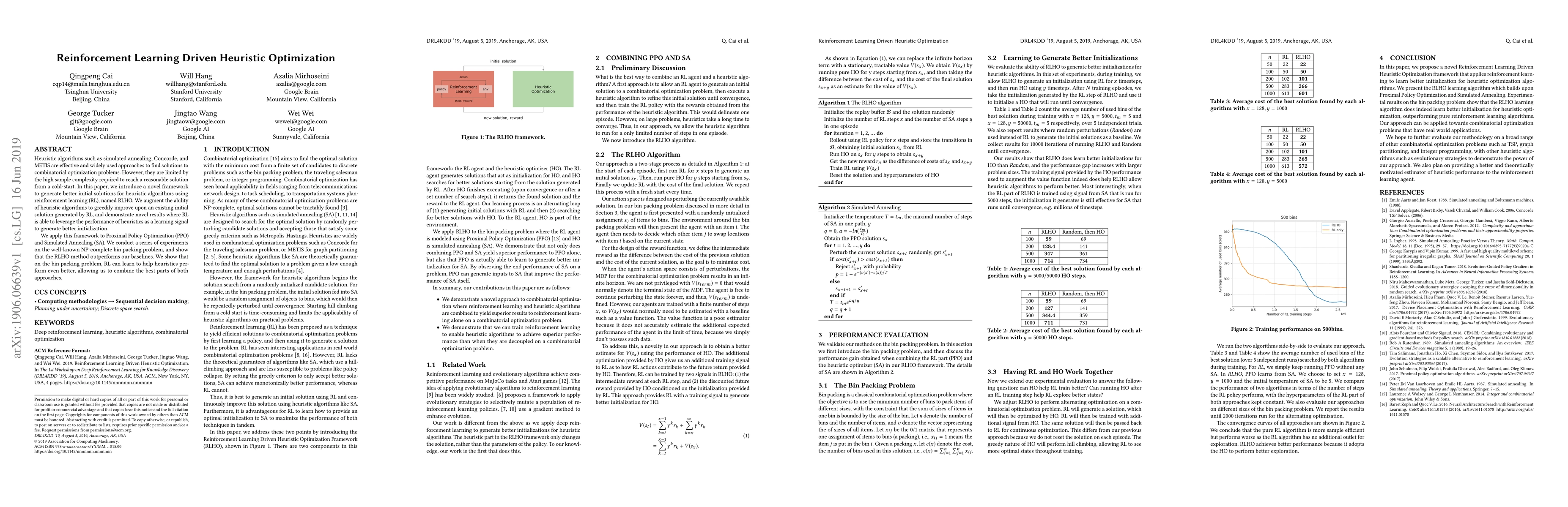 A new framework called RLHO uses reinforcement learning to generate better initial solutions for heuristic algorithms, outperforming traditional methods on the bin packing problem.