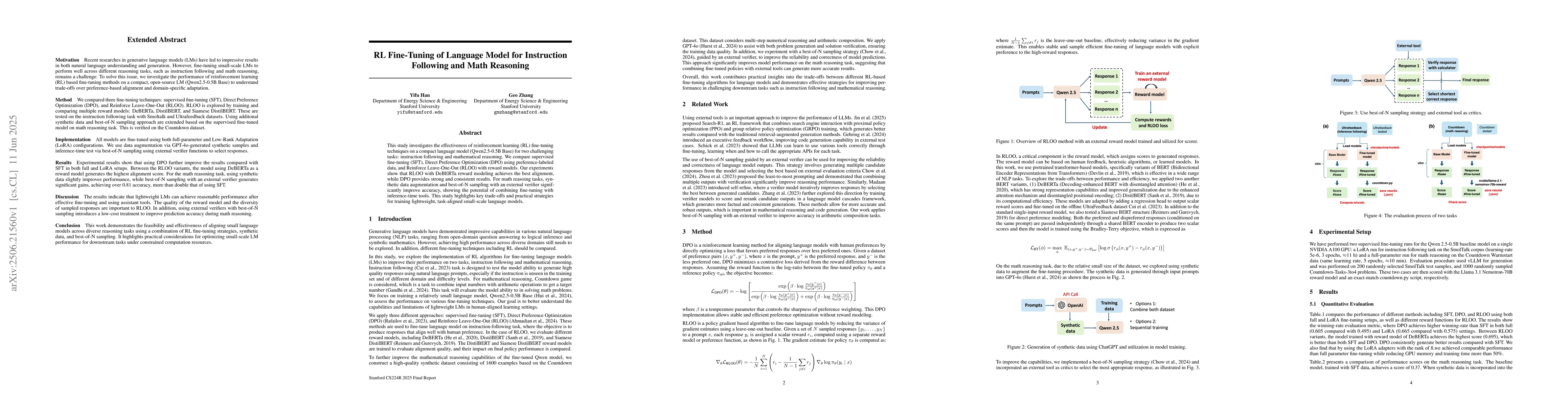This study investigates the effectiveness of reinforcement learning (RL) fine-tuning techniques on a compact language model (Qwen2.5-0.5B Base) for two challenging tasks: instruction following and mathematical reasoning. We compare supervised fine-tuning (SFT), Direct Preference Optimization (DPO) using preference-labeled data, and Reinforce Leave-One-Out (RLOO) with reward models. Our experiments show that RLOO with DeBERTa reward modeling achieves the best alignment, while DPO provides strong and consistent results. For math reasoing tasks, synthetic data augmentation and best-of-N sampling with an external verifier significantly improve accuracy, showing the potential of combining fine-tuning with inference-time tools. This study highlights key trade-offs and practical strategies for training lightweight, task-aligned small-scale language models.