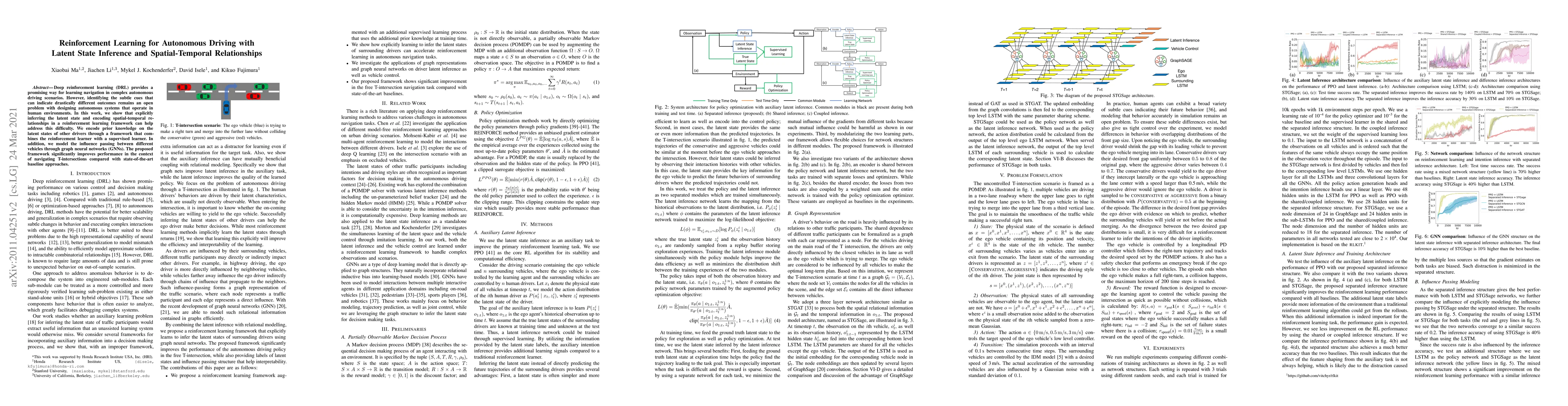 This paper proposes a reinforcement learning framework that infers latent states and encodes spatial-temporal relationships to enhance autonomous driving navigation. By combining reinforcement learning with supervised learning and using graph neural networks, the approach significantly improves performance in complex scenarios like T-intersections.