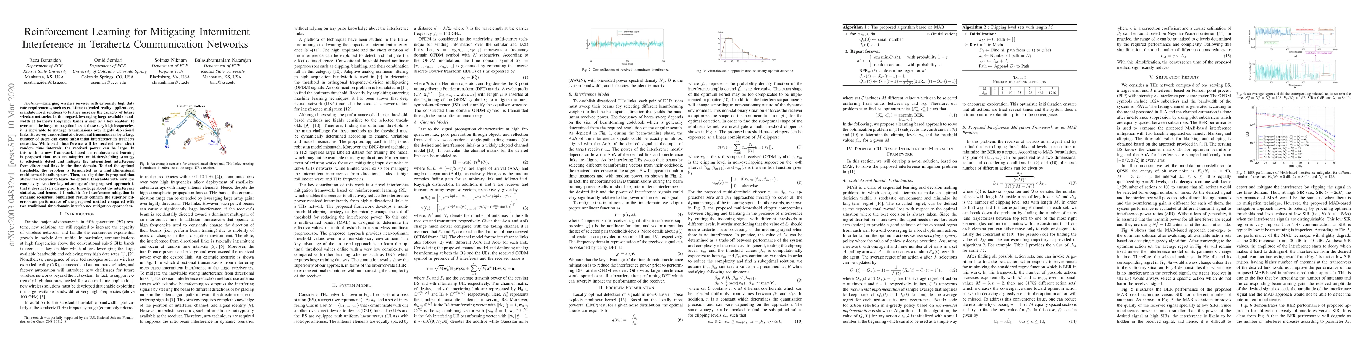 This paper proposes a reinforcement learning framework to mitigate intermittent interference in terahertz communication networks using adaptive multi-thresholding. The method formulates the problem as a multidimensional multi-armed bandit system and achieves optimal threshold learning with low complexity, without requiring prior knowledge of interference statistics.