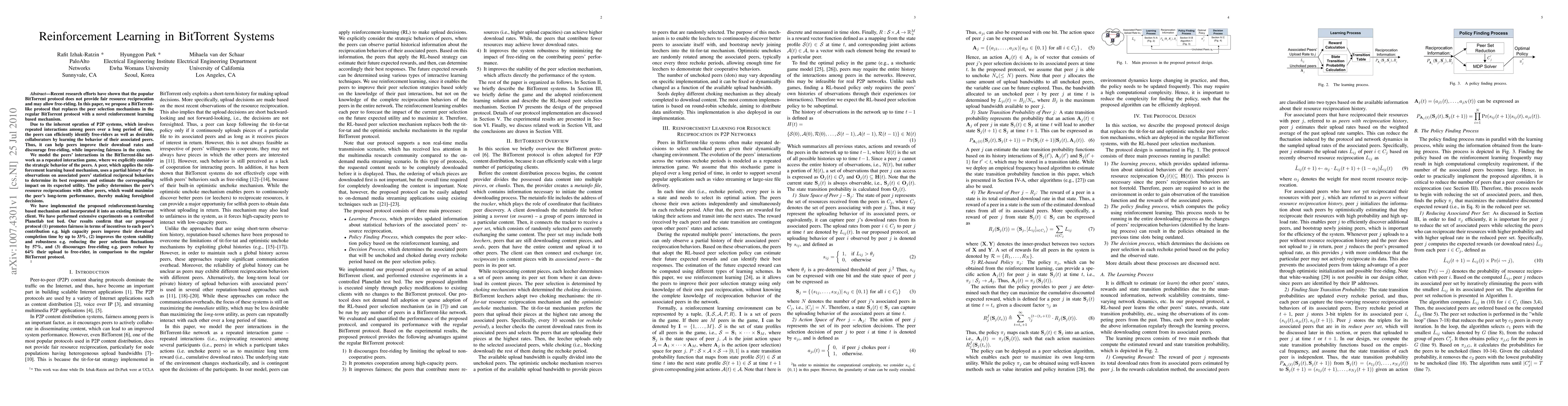 This paper proposes a reinforcement learning-based mechanism to improve fairness and reduce free-riding in BitTorrent systems. The RL-based peer selection mechanism identifies free-riders and desirable collaborators, promoting fairness and improving download rates, while reducing peer selection fluctuations and discouraging free-riding.