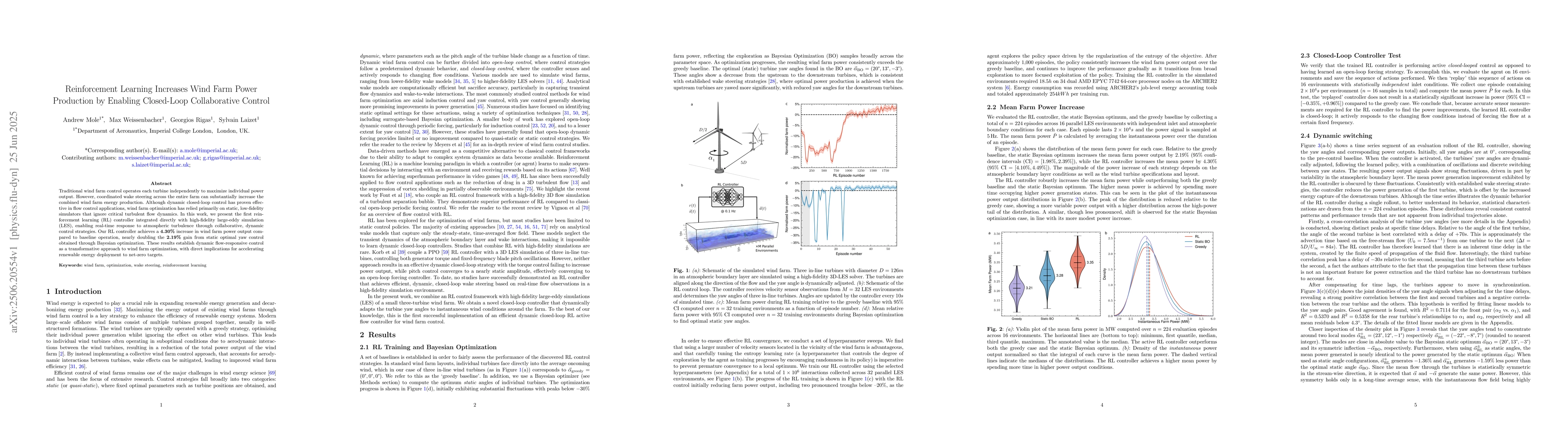 This work presents a unique combination of RL and LES techniques to address the complex challenges of wind farm control, offering a promising approach for improving energy production and reducing emissions.