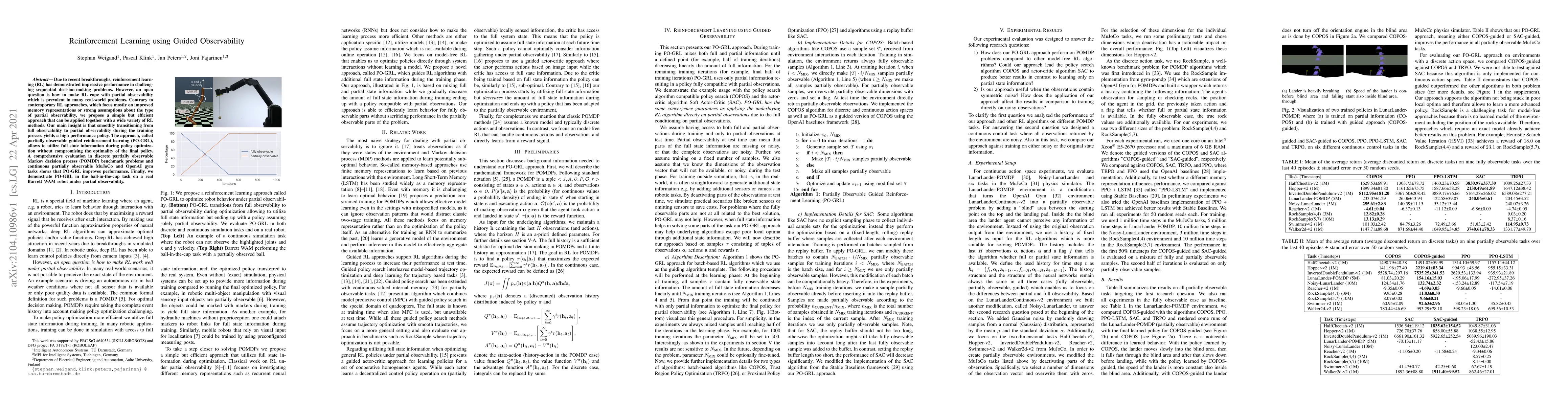 This paper proposes a novel reinforcement learning method called partially observable guided reinforcement learning (PO-GRL) to tackle partial observability in real-world problems. The method gradually transitions from full to partial observability during training, enhancing performance without compromising policy optimality. Evaluations on POMDP benchmarks and real-world robotic tasks show significant improvements.