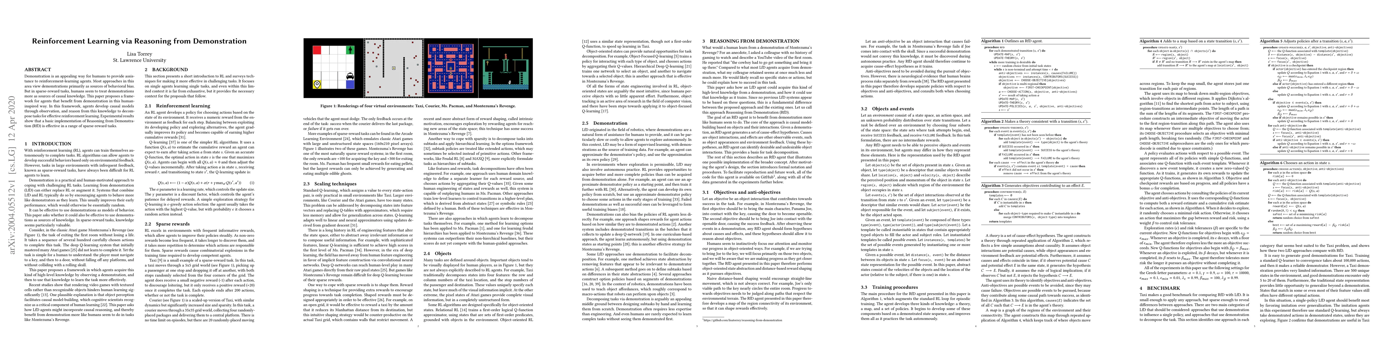 This paper introduces a framework where reinforcement learning agents utilize demonstrations to develop causal models, enabling them to reason and decompose tasks for effective learning in sparse-reward environments. Experimental results demonstrate the effectiveness of Reasoning from Demonstration (RfD) in various tasks.