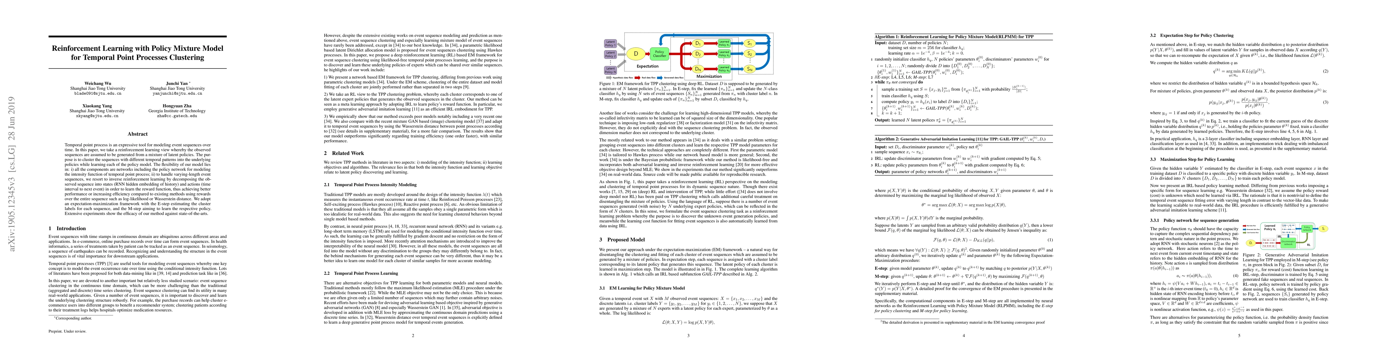 This paper proposes a reinforcement learning approach to cluster temporal point processes using a mixture of latent policies, employing neural networks for flexibility. It utilizes inverse reinforcement learning to handle varying-length sequences, achieving better performance compared to existing methods.