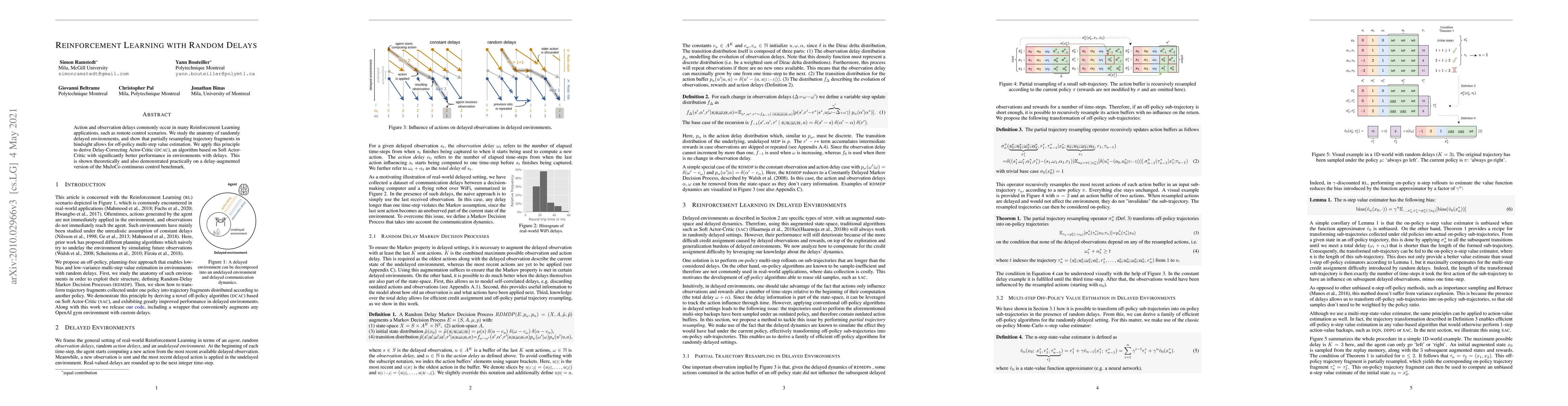 Action and observation delays commonly occur in many Reinforcement Learning applications, such as remote control scenarios. We study the anatomy of randomly delayed environments, and show that partially resampling trajectory fragments in hindsight allows for off-policy multi-step value estimation. We apply this principle to derive Delay-Correcting Actor-Critic (DCAC), an algorithm based on Soft Actor-Critic with significantly better performance in environments with delays. This is shown theoretically and also demonstrated practically on a delay-augmented version of the MuJoCo continuous control benchmark.