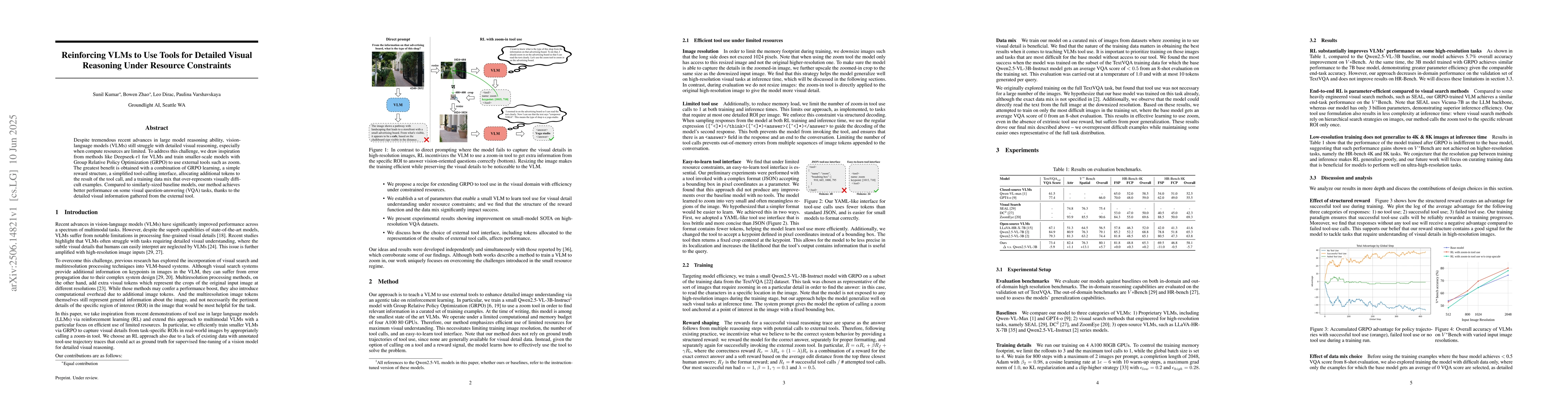 Despite tremendous recent advances in large model reasoning ability, vision-language models (VLMs) still struggle with detailed visual reasoning, especially when compute resources are limited. To address this challenge, we draw inspiration from methods like Deepseek-r1 for VLMs and train smaller-scale models with Group Relative Policy Optimization (GRPO) to use external tools such as zoom. The greatest benefit is obtained with a combination of GRPO learning, a simple reward structure, a simplified tool-calling interface, allocating additional tokens to the result of the tool call, and a training data mix that over-represents visually difficult examples. Compared to similarly-sized baseline models, our method achieves better performance on some visual question-answering (VQA) tasks, thanks to the detailed visual information gathered from the external tool.