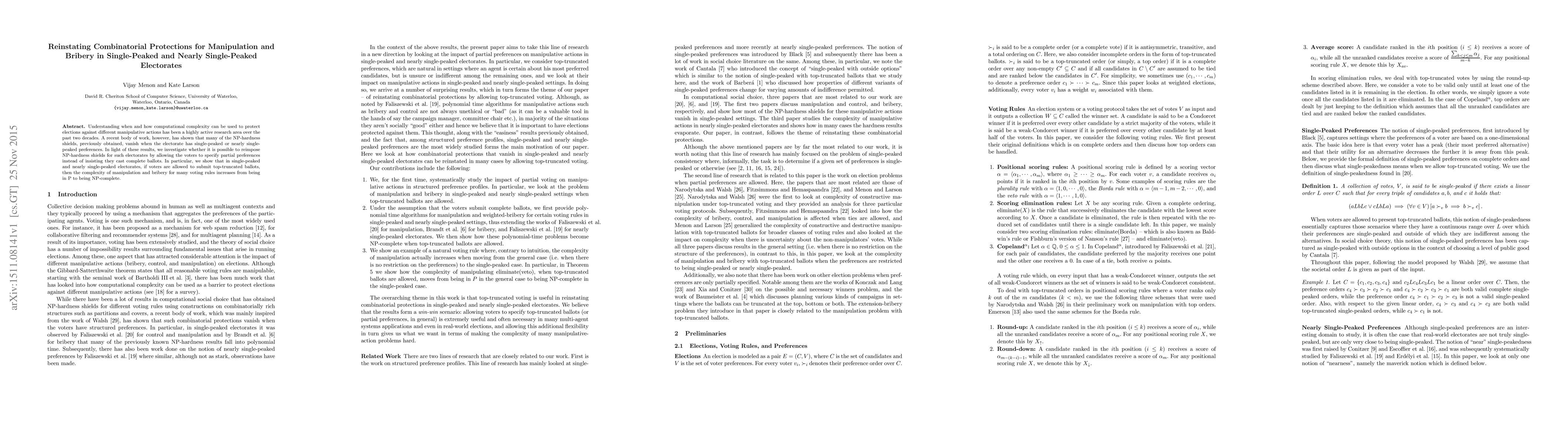 This paper explores reinstating computational complexity protections against manipulation and bribery in single-peaked and nearly single-peaked electorates by allowing voters to submit partial preferences, specifically top-truncated ballots, which increases the complexity of these actions from polynomial to NP-complete.