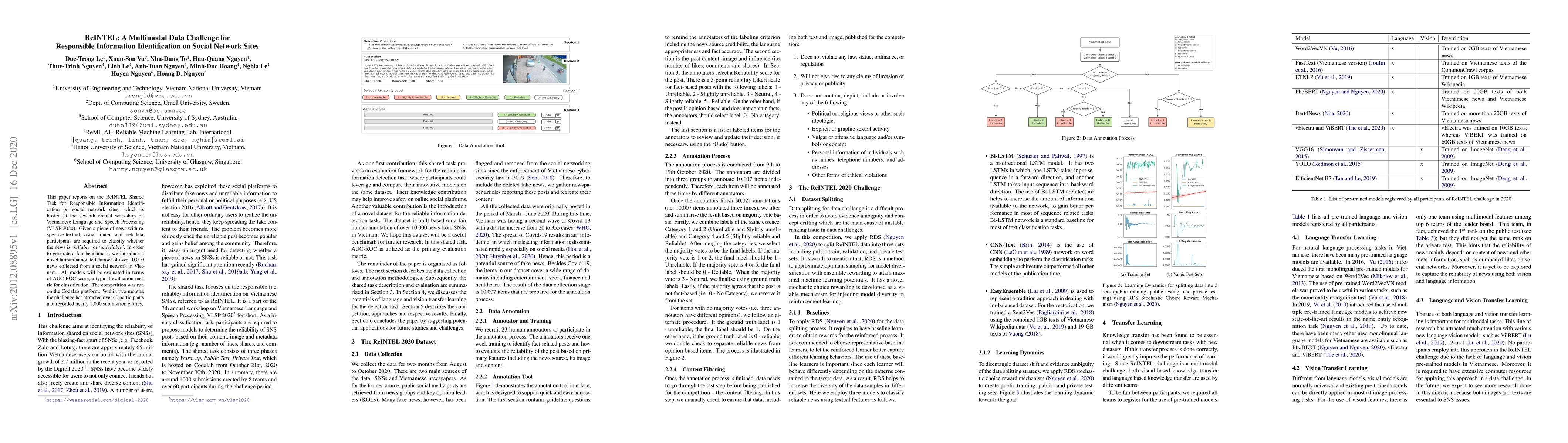 The ReINTEL Shared Task at VLSP 2020 aims to identify reliable information on social networks through multimodal classification of news articles, using a new dataset of over 10,000 annotated news items. The challenge attracted over 60 participants and nearly 1,000 submissions, evaluated by AUC-ROC scores.