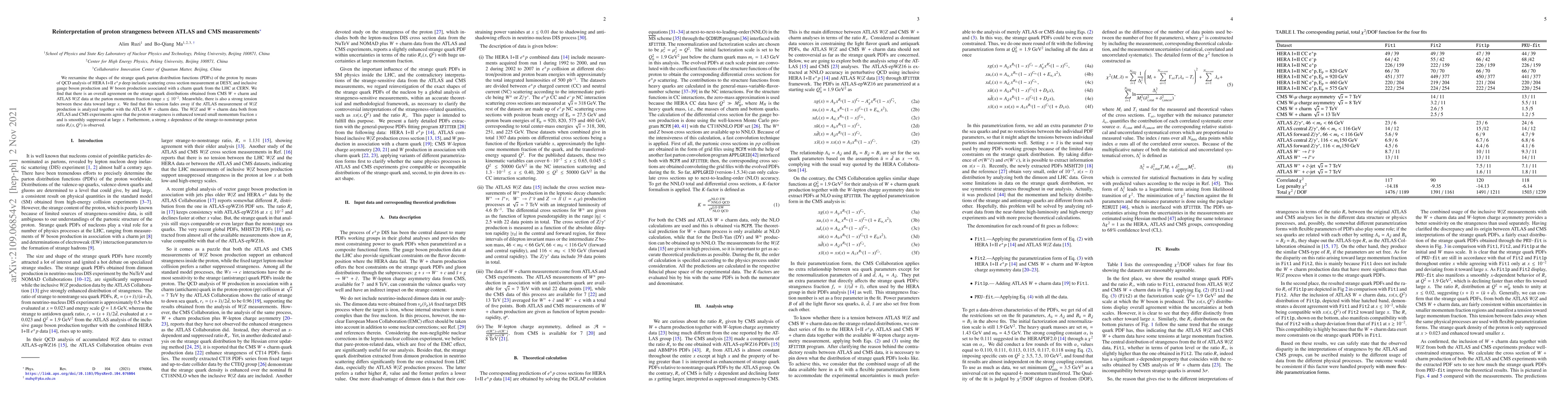 We reexamine the shapes of the strange quark parton distribution functions (PDFs) of the proton by means of quantum chromodynamics (QCD) analysis of {\hera} deep inelastic scattering cross section measurement at DESY, and inclusive gauge boson production and $W$ boson production associated with a charm quark from LHC at CERN. We find that there is an overall agreement on the strange quark distributions obtained from CMS $W$ + charm and ATLAS $W/Z$ data at the parton momentum fraction range $x \lesssim 10^{-2}$. Meanwhile, there is also a strong tension between these data towards large $x$. We find that this tension fades away if the ATLAS measurement of $W/Z$ production is analyzed together with the ATLAS $W$ + charm data. The $W/Z$ and $W$ + charm data both from ATLAS and CMS experiments agree that the proton strangeness is enhanced towards small momentum fraction $x$ and is smoothly suppressed at large $x$. Furthermore, a strong $x$ dependence of the strange-to-non-strange parton ratio $R_s(x,Q^2)$ is observed.