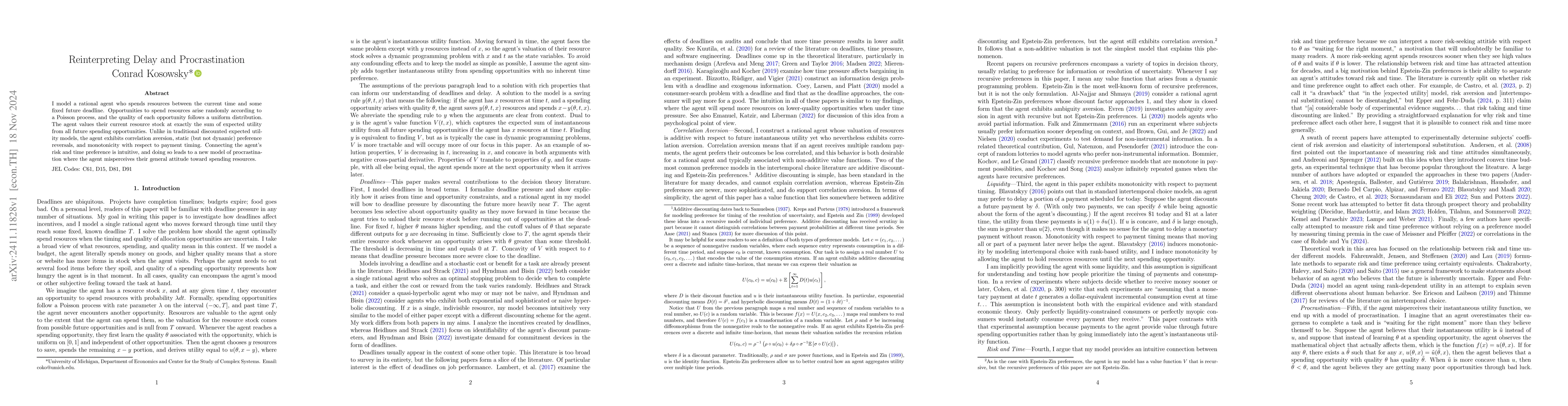 I model a rational agent who spends resources between the current time and some fixed future deadline. Opportunities to spend resources arise randomly according to a Poisson process, and the quality of each opportunity follows a uniform distribution. The agent values their current resource stock at exactly the sum of expected utility from all future spending opportunities. Unlike in traditional discounted expected utility models, the agent exhibits correlation aversion, static (but not dynamic) preference reversals, and monotonicity with respect to payment timing. Connecting the agent's risk and time preference is intuitive, and doing so leads to a new model of procrastination where the agent misperceives their general attitude toward spending resources.