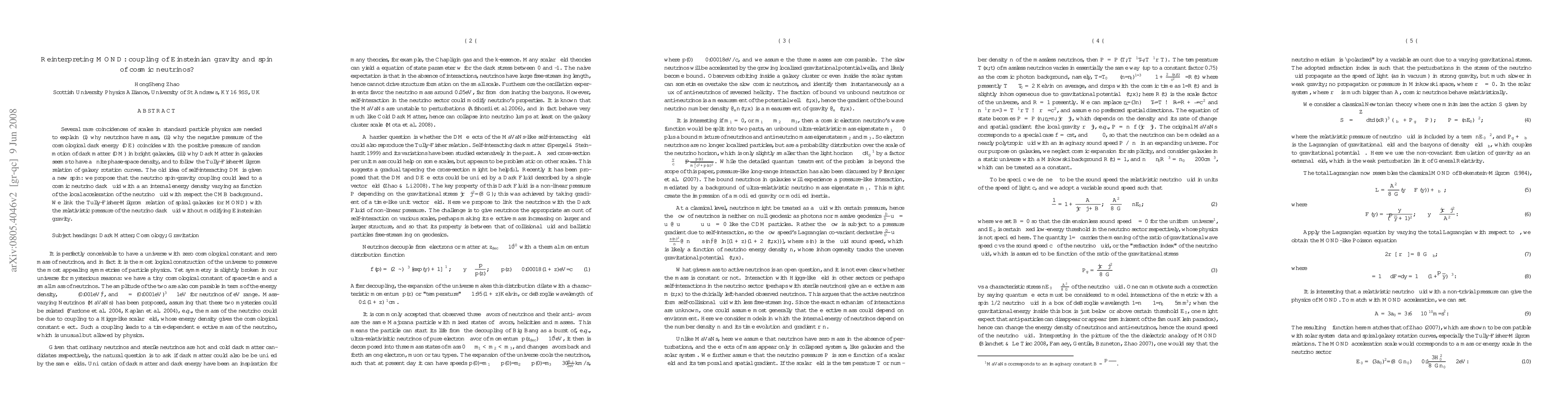 Several rare coincidences of scales in standard particle physics are needed to explain (i) why neutrinos have mass, (ii) why the negative pressure of the cosmological dark energy (DE) coincides with the positive pressure of random motion of dark matter (DM) in bright galaxies, (iii) why Dark Matter in galaxies seems to have a finite phase-space density, and to follow the Tully-Fisher-Milgrom relation of galaxy rotation curves. The old idea of self-interacting DM is given a new spin: we propose that the neutrino spin-gravity coupling could lead to a cosmic neutrino dark fluid with a an internal energy density varying as function of the local acceleration of the neutrino fluid with respect the CMB background. We link the Tully-Fisher-Milgrom relation of spiral galaxies (or MOND) with the relativistic pressure of the neutrino dark fluid without modifying Einsteinian gravity.
