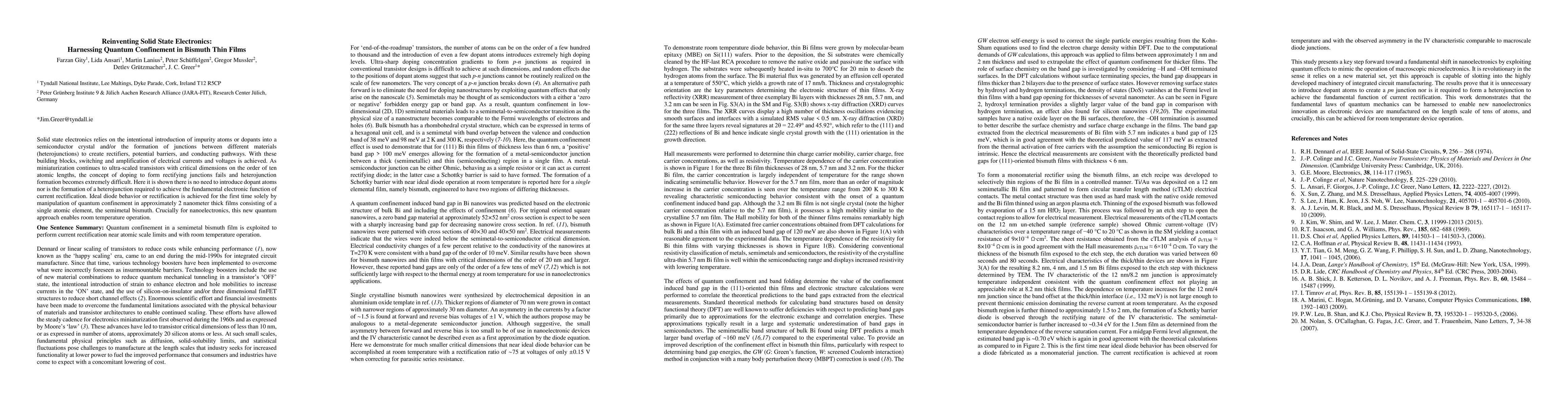 Solid state electronics relies on the intentional introduction of impurity atoms or dopants into a semiconductor crystal and/or the formation of junctions between different materials (heterojunctions) to create rectifiers, potential barriers, and conducting pathways. With these building blocks, switching and amplification of electrical currents and voltages is achieved. As miniaturization continues to ultra-scaled transistors with critical dimensions on the order of ten atomic lengths, the concept of doping to form rectifying junctions fails and heterojunction formation becomes extremely difficult. Here it is shown there is no need to introduce dopant atoms nor is the formation of a heterojunction required to achieve the fundamental electronic function of current rectification. Ideal diode behavior or rectification is achieved for the first time solely by manipulation of quantum confinement in approximately 2 nanometer thick films consisting of a single atomic element, the semimetal bismuth. Crucially for nanoelectronics, this new quantum approach enables room temperature operation.