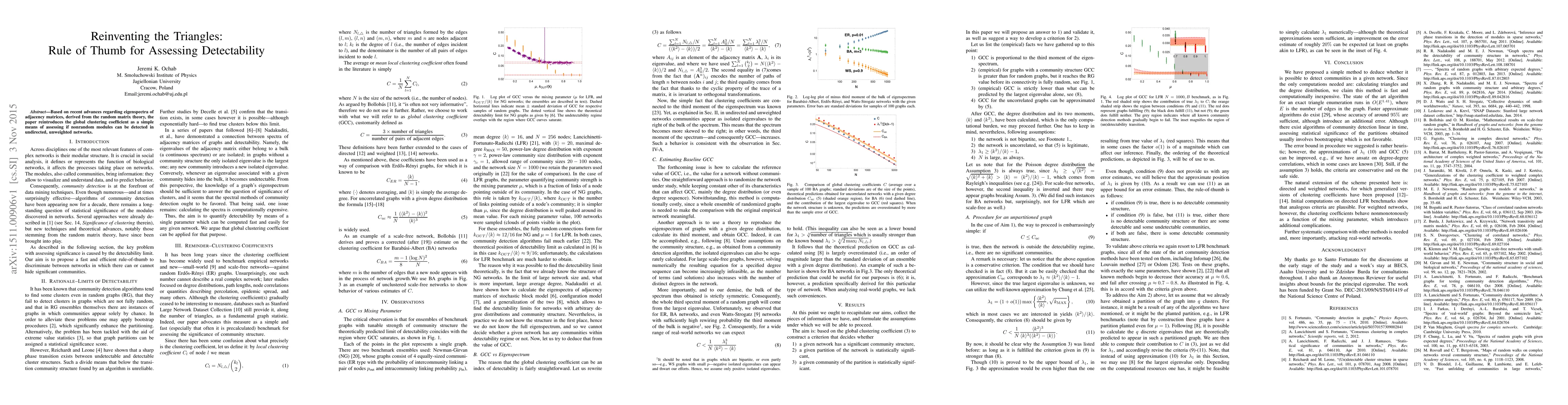 Researchers developed a simple method to assess detectability in network clustering, identifying communities beyond random fluctuations. The approach is faster than existing methods and relies on the global clustering coefficient of an undirected network.