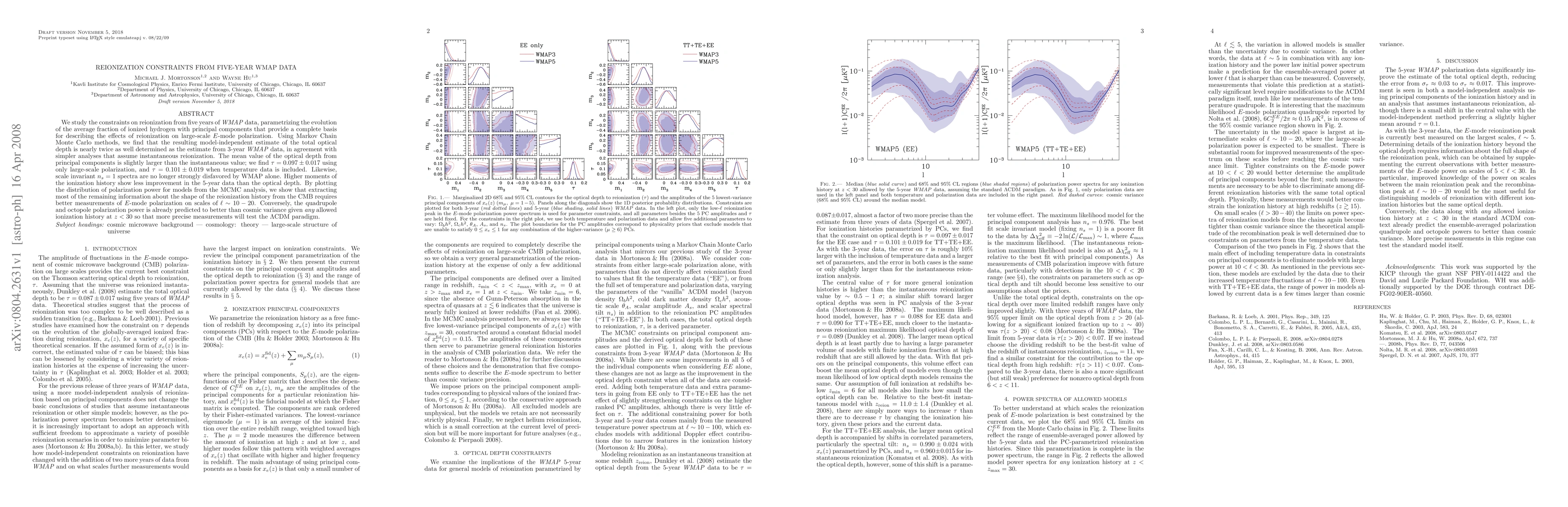 This paper uses five years of WMAP data to constrain reionization, finding a more precise estimate of the optical depth at tau=0.097±0.017, nearly double the previous estimate from three years of data. The study also suggests that scale invariant spectra are no longer strongly disfavored.