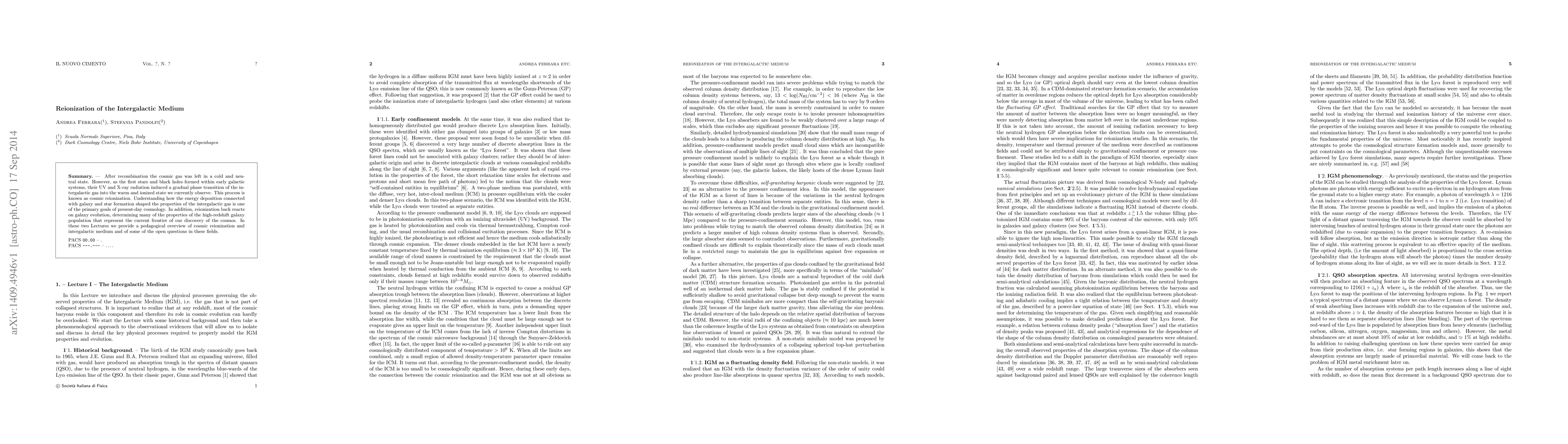 After recombination the cosmic gas was left in a cold and neutral state. However, as the first stars and black holes formed within early galactic systems, their UV and X-ray radiation induced a gradual phase transition of the intergalactic gas into the warm and ionized state we currently observe. This process is known as cosmic reionization. Understanding how the energy deposition connected with galaxy and star formation shaped the properties of the intergalactic gas is one of the primary goals of present-day cosmology. In addition, reionization back reacts on galaxy evolution, determining many of the properties of the high-redshift galaxy population that represent the current frontier of our discovery of the cosmos. In these two Lectures we provide a pedagogical overview of cosmic reionization and intergalactic medium and of some of the open questions in these fields.