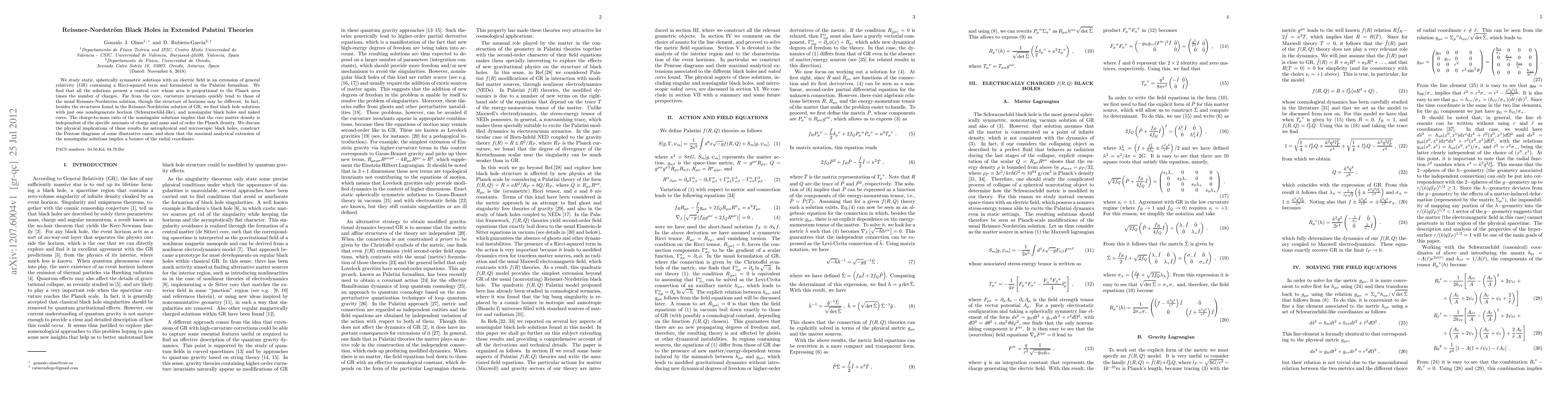 This paper investigates static, spherically symmetric black holes in extended Palatini theories of gravity with a Ricci-squared term. It finds that solutions include nonsingular black holes and naked cores, with central cores proportional to Planck area times charge number, and discusses their astrophysical and microscopic implications.