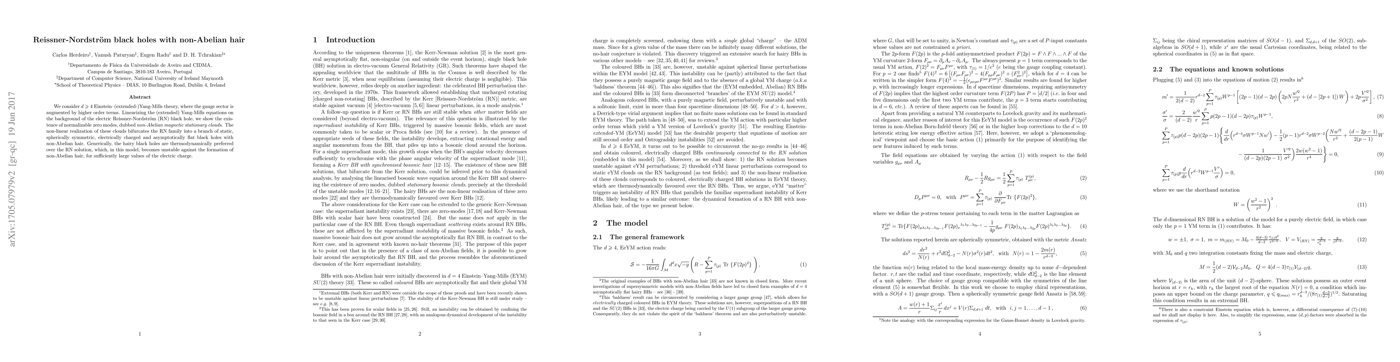 This paper explores $d\geqslant 4$ Einstein-(extended)-Yang-Mills theory with higher-order gauge terms, revealing the existence of non-Abelian magnetic stationary clouds in Reissner-Nordström black holes. These clouds lead to a new family of static, charged black holes with non-Abelian hair, which are thermodynamically favored over the traditional Reissner-Nordström solution for large electric charges.
