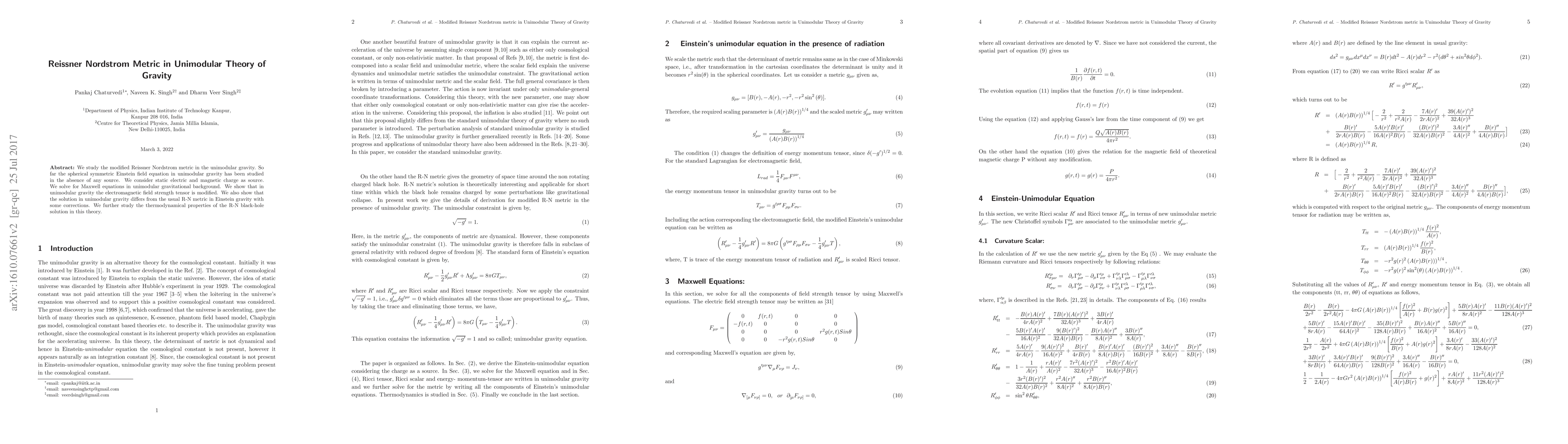 We study the modified Reissner Nordstrom metric in the unimodular gravity. So far the spherical symmetric Einstein field equation in unimodular gravity has been studied in the absence of any source. We consider static electric and magnetic charge as source. We solve for Maxwell equations in unimodular gravitational background. We show that in unimodular gravity the electromagnetic field strength tensor is modified. We also show that the solution in unimodular gravity differs from the usual R-N metric in Einstein gravity with some corrections. We further study the thermodynamical properties of the R-N black-hole solution in this theory.